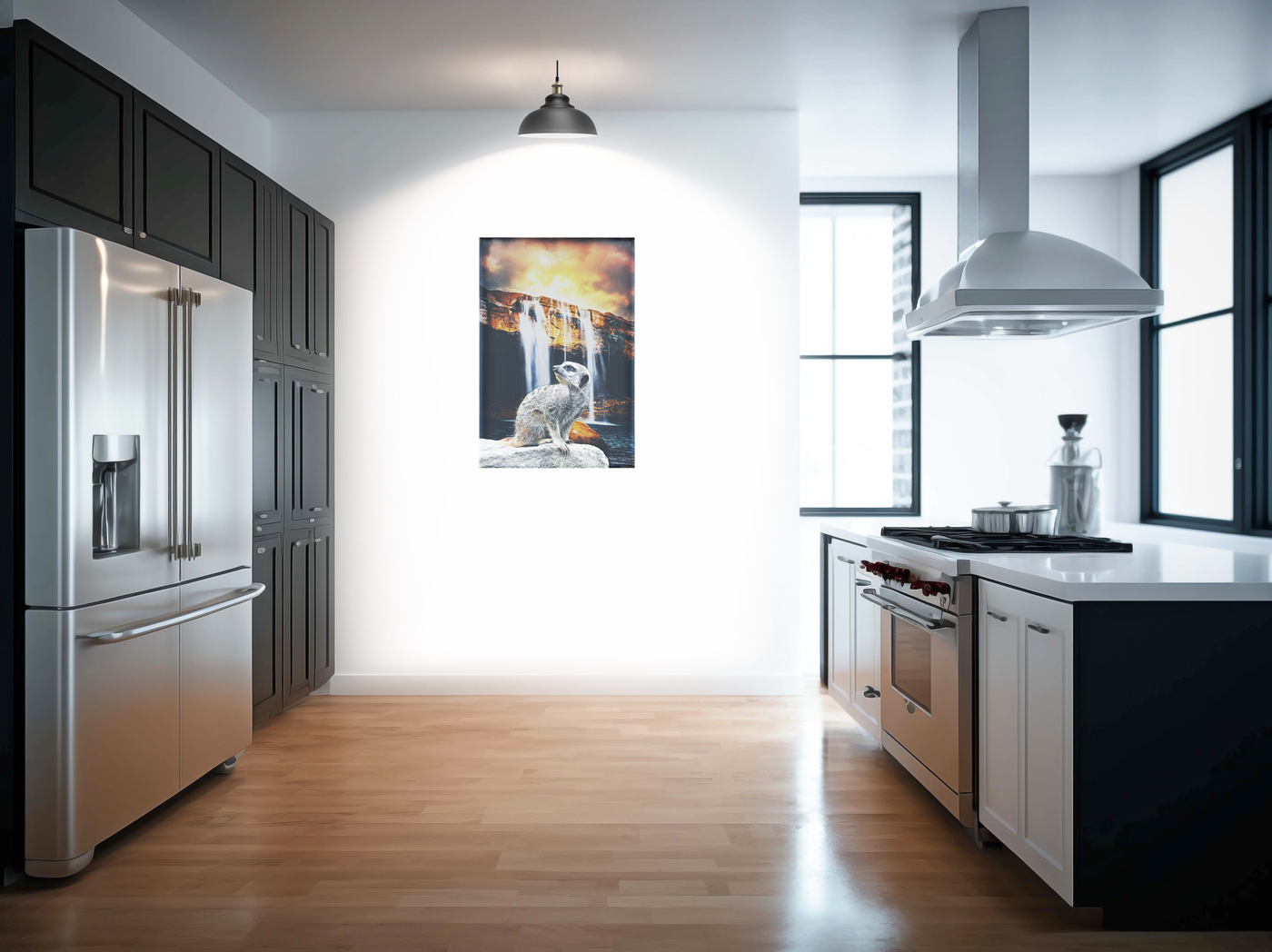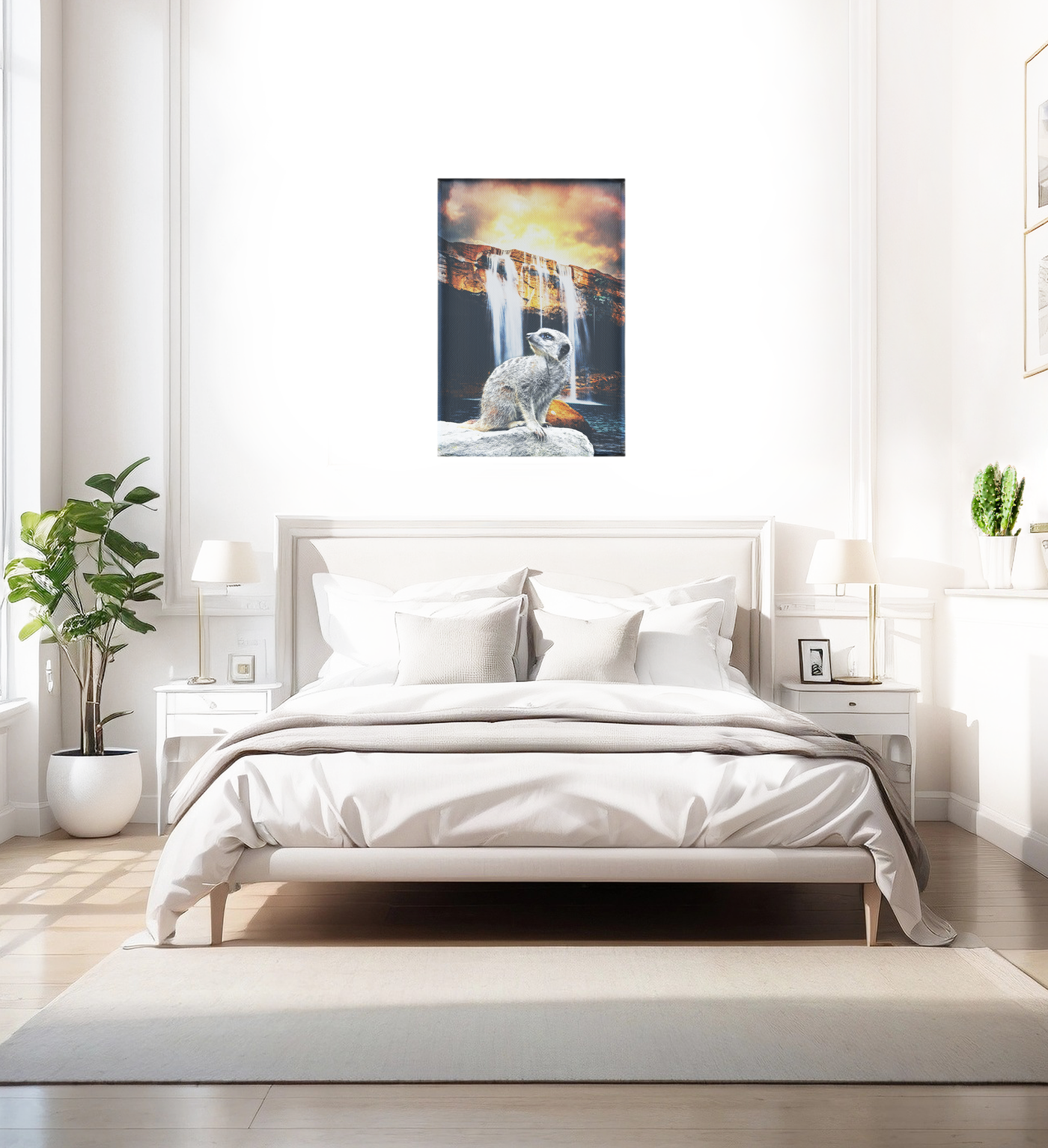 Our Waterfall Meerkat Canvas print is the perfect way to bring nature into your home. The detail in the image contrasts with the abstracted background to create a balanced, cool Canvas print.