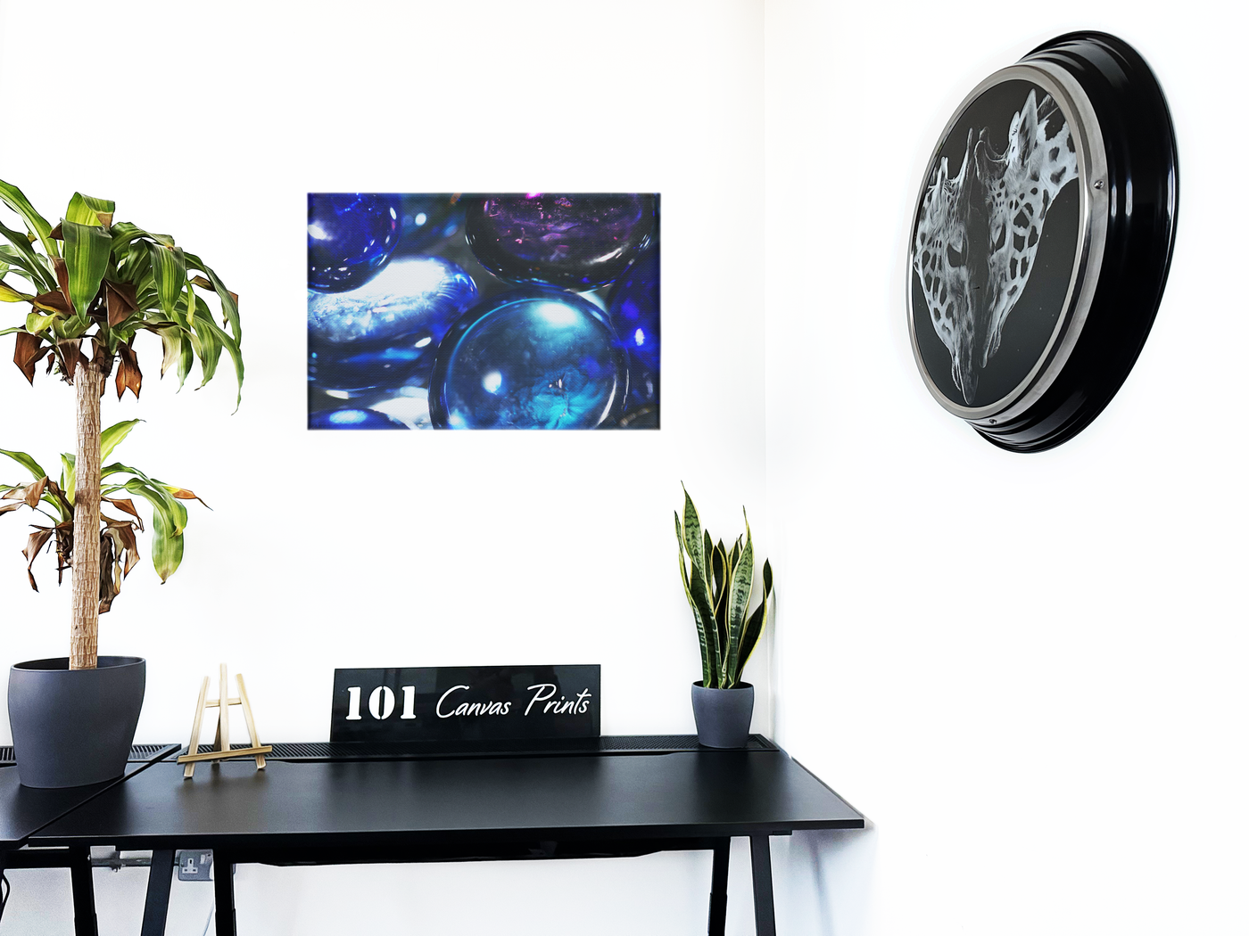 Drift into a dreamlike realm with "Midnight Orbs: A Celestial Dance", an enchanting Canvas print from 101 Canvas Prints. Our expert photography team has crafted a mystical scene of glowing spheres, resulting in a composition that sparks the imagination and soothes the soul.