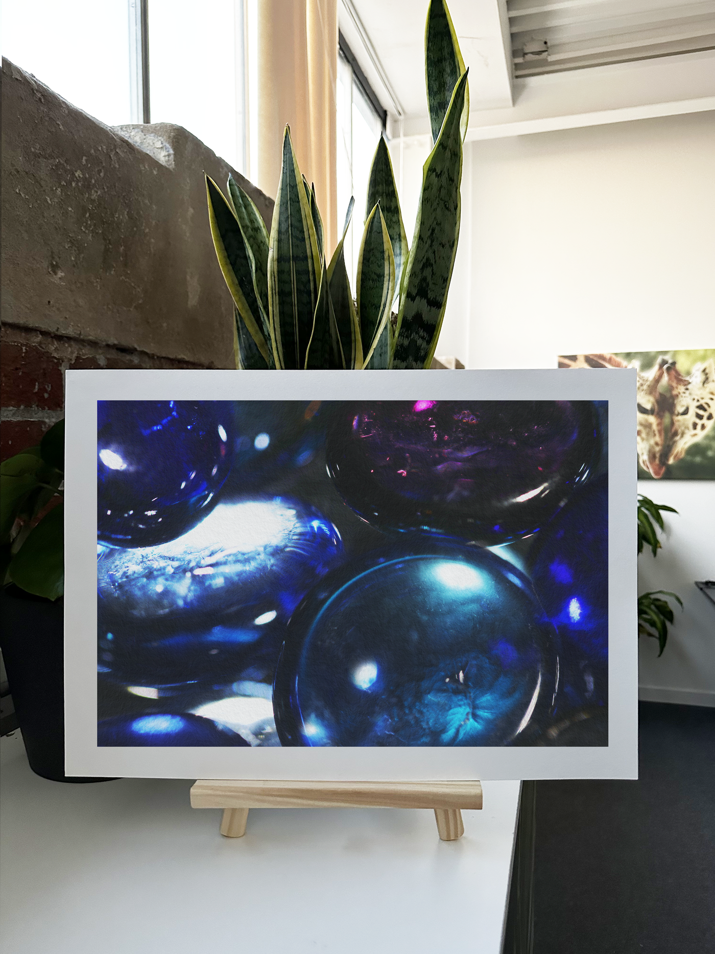 Our advanced printing techniques ensure that the rich blues and delicate light effects of this otherworldly scene are faithfully reproduced on Fine Art paper. The varying intensities of blue create a sense of depth and dimension, while the glowing highlights add an element of magic and movement to the piece.