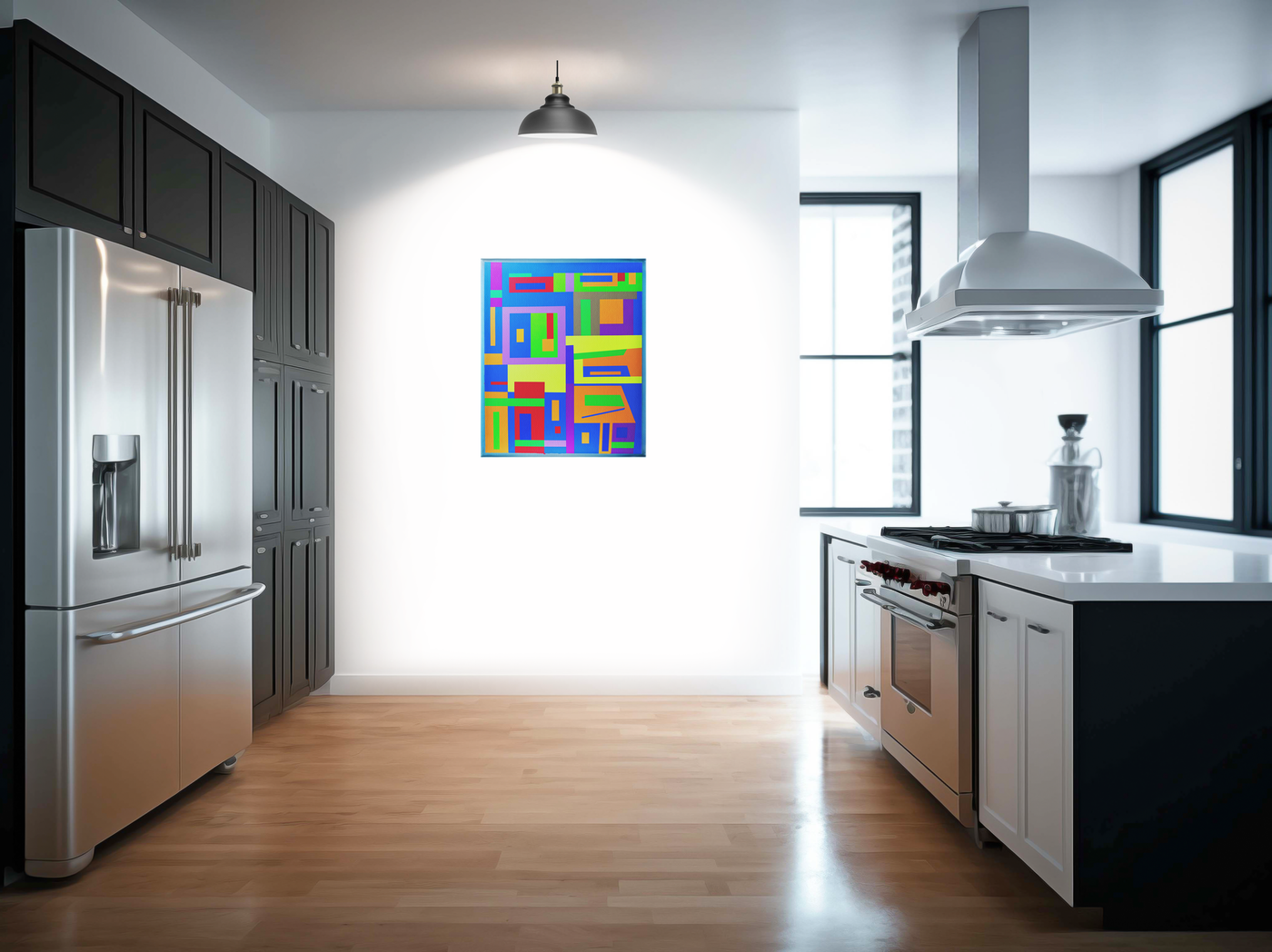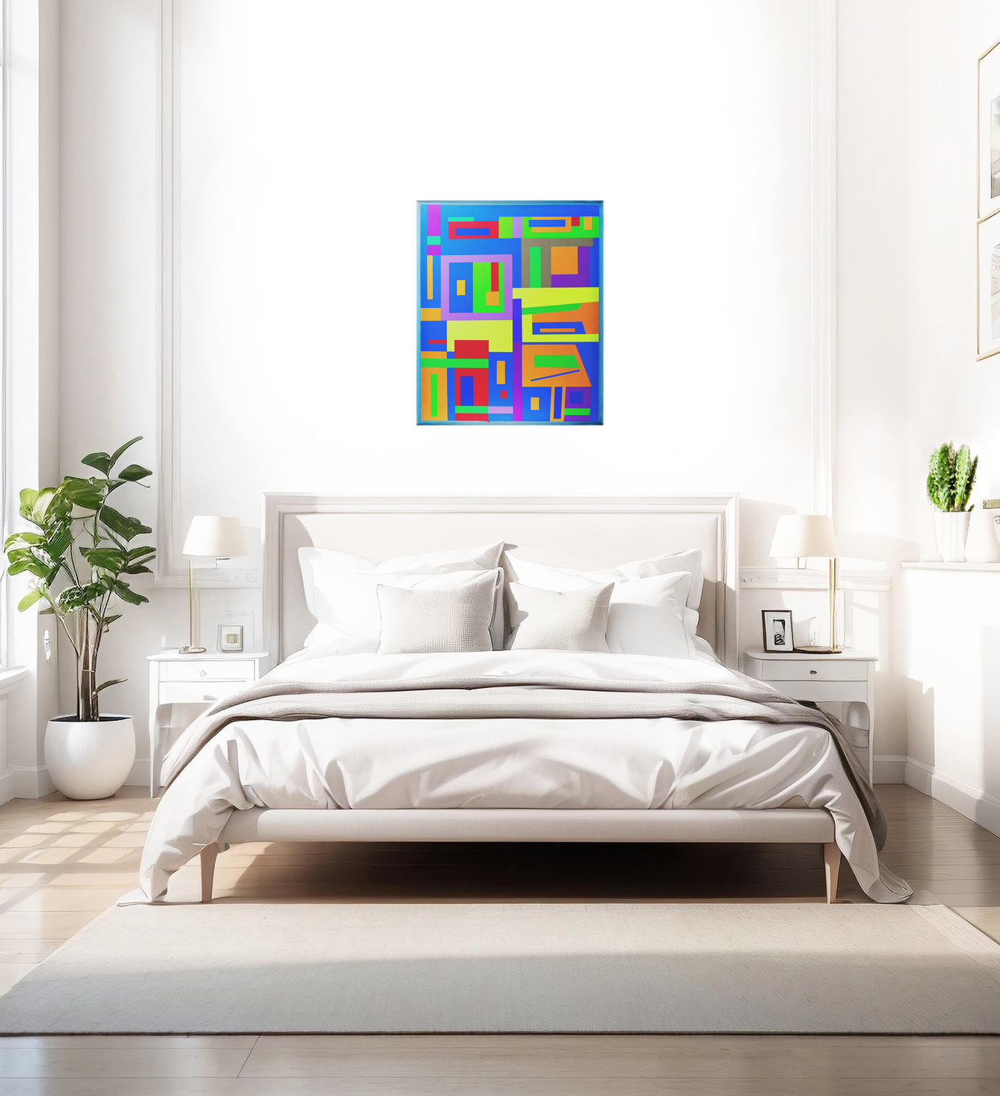 Reproduced on our premium Canvas material, this personal meditation on place takes on an additional layer of artistic refinement. The natural, matte finish of the Canvas softens the bold colours just enough to create a sophisticated gallery-quality appearance while maintaining the graphic impact of the geometric forms. This piece would make a striking addition to any contemporary space, particularly in areas where its exploration of community and modernism can spark conversation about the intersection of place and memory.