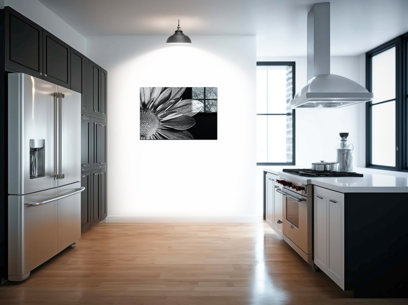 The Monochromatic palette allows for an extraordinary exploration of texture and tone, from the almost crystalline structure of the flower's centre to the smooth, luminous quality of the petals. Through our precise photography and print enhancement process, we've maintained every subtle gradation of grey, ensuring that the full range of tones is preserved with perfect clarity. The result is a study in contrast that reveals the extraordinary complexity present in everyday natural forms.