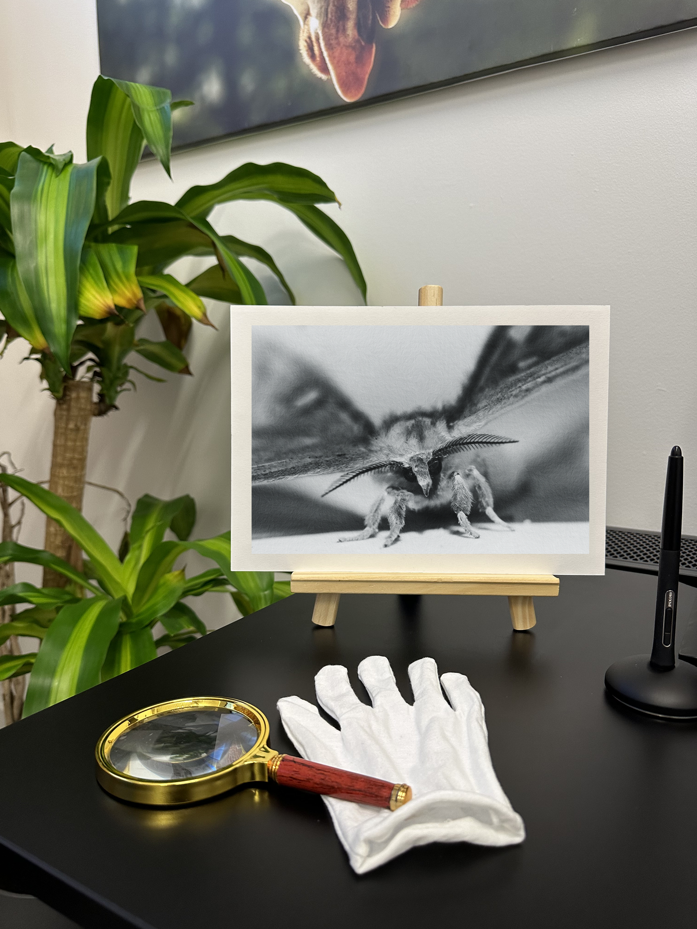 The Fine Art print medium beautifully complements the photograph's textural qualities, adding a subtle tactile dimension to the visual experience. The matte finish of the Fine Art print softens the contrast, enhancing the dreamy, ethereal quality of the image. 101 Canvas Prints' photography team has captured the moth's otherworldly beauty, producing a piece that brings nature's hidden wonders into focus. This print is ideal for studies, creative spaces, or any area where one wishes to introduce a touch of natural curiosity and quiet contemplation.