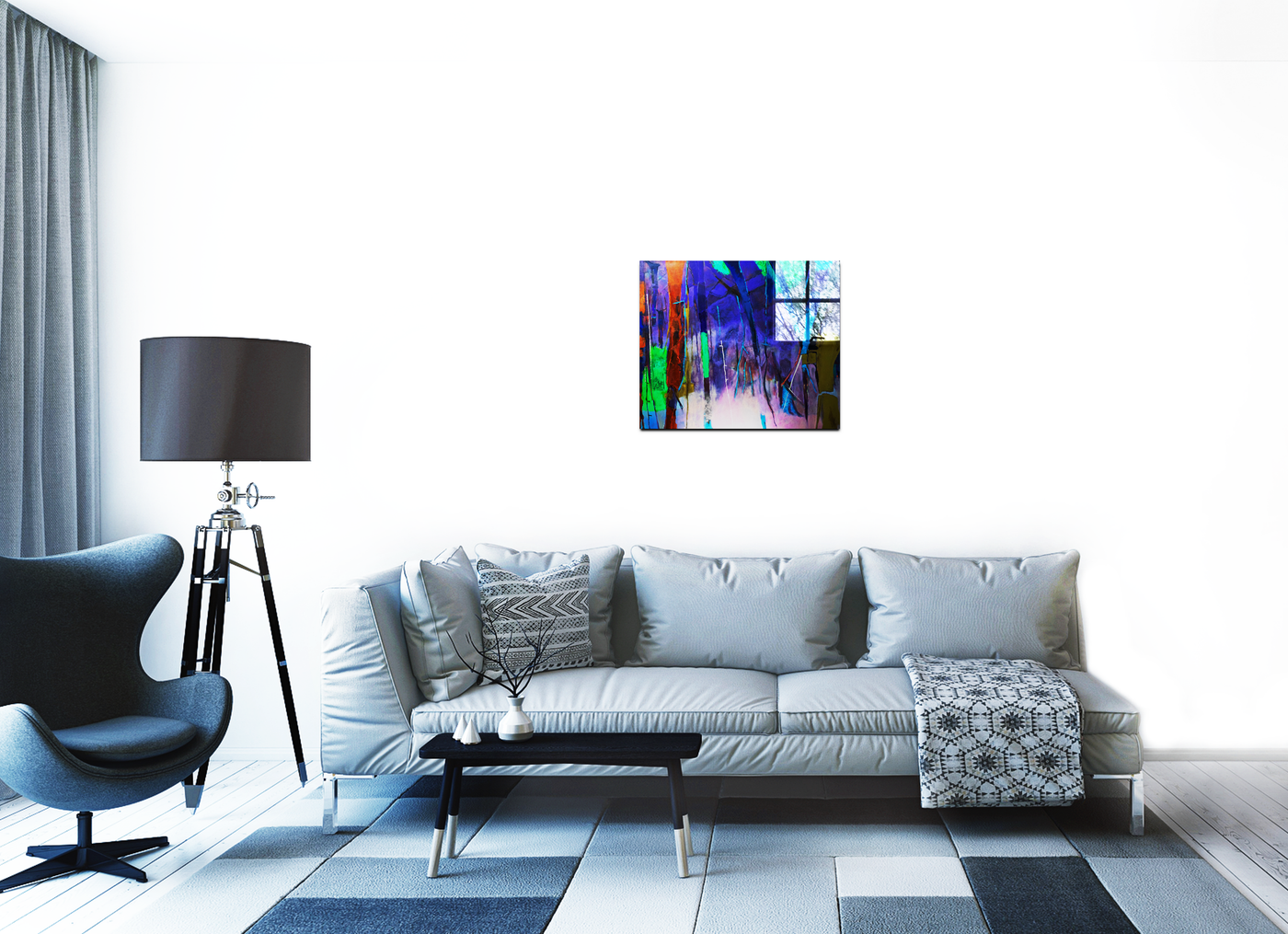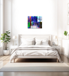 The artist's sophisticated use of colour creates a powerful visual impact, with deep blues and purples suggesting both evening shadows and the depth of memory, while bright greens and warm earth tones speak to growth and resilience. Through our precise photography and print enhancement process, we've maintained every subtle variation in tone and texture, ensuring that both the physical memory of the space and its emotional resonance are preserved with perfect clarity.