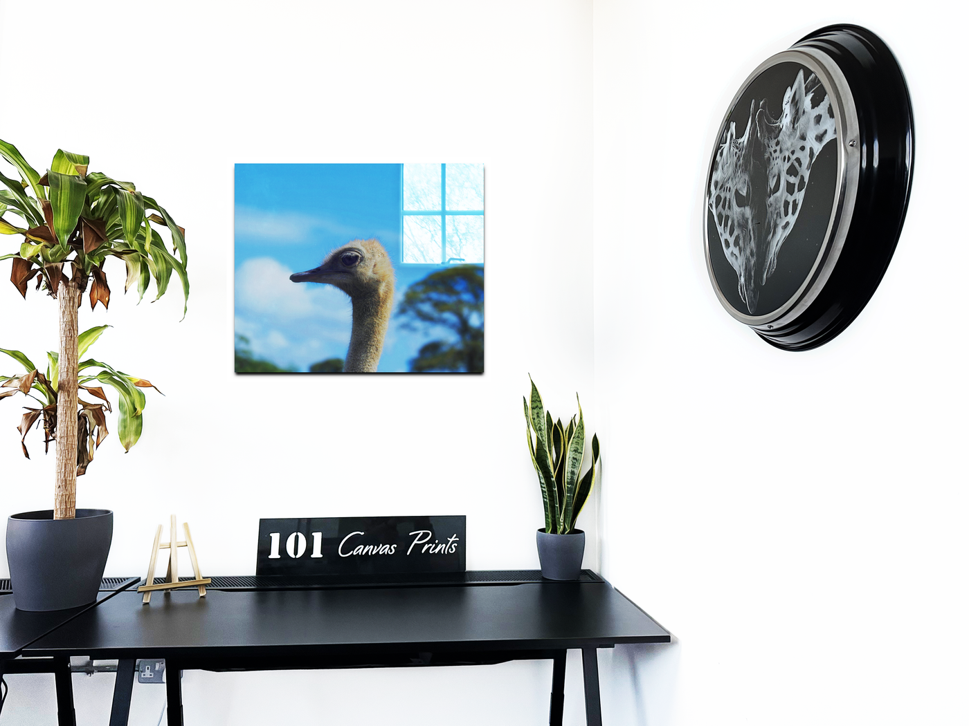 Designed for the modern home, this Acrylic print makes a great centrepiece in any space. A striking image of a relaxed ostrich against a bright-blue sky is captured in stunning high definition by the 101 Canvas Print team and printed using the highest quality inks and materials. The neutral palette of this piece allows it to blend easily into most decors.