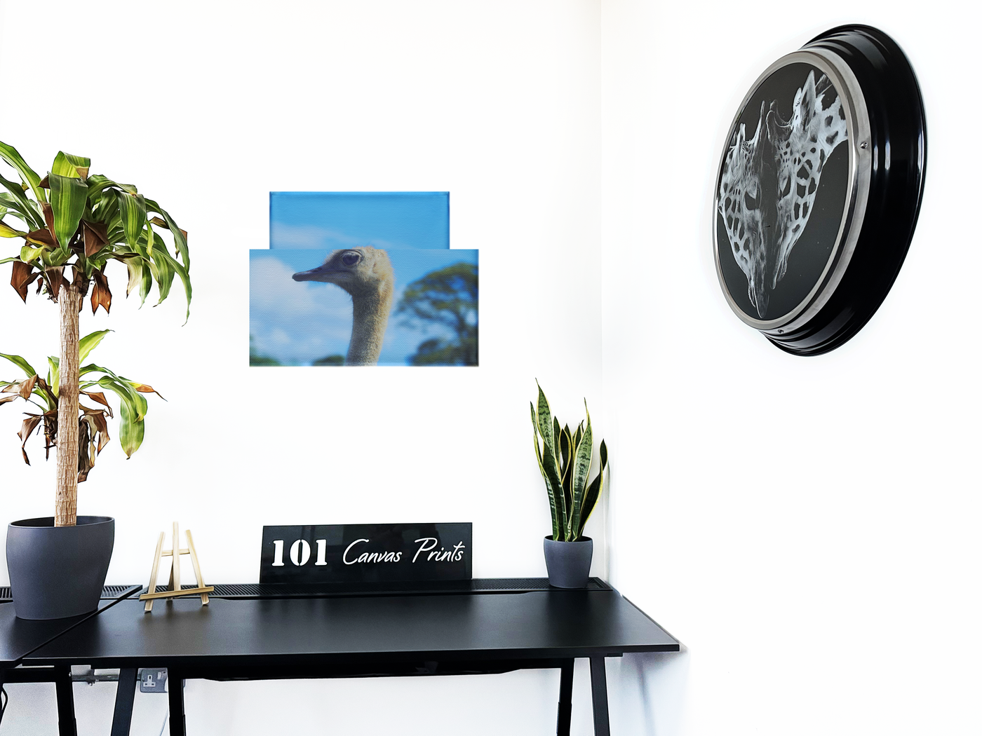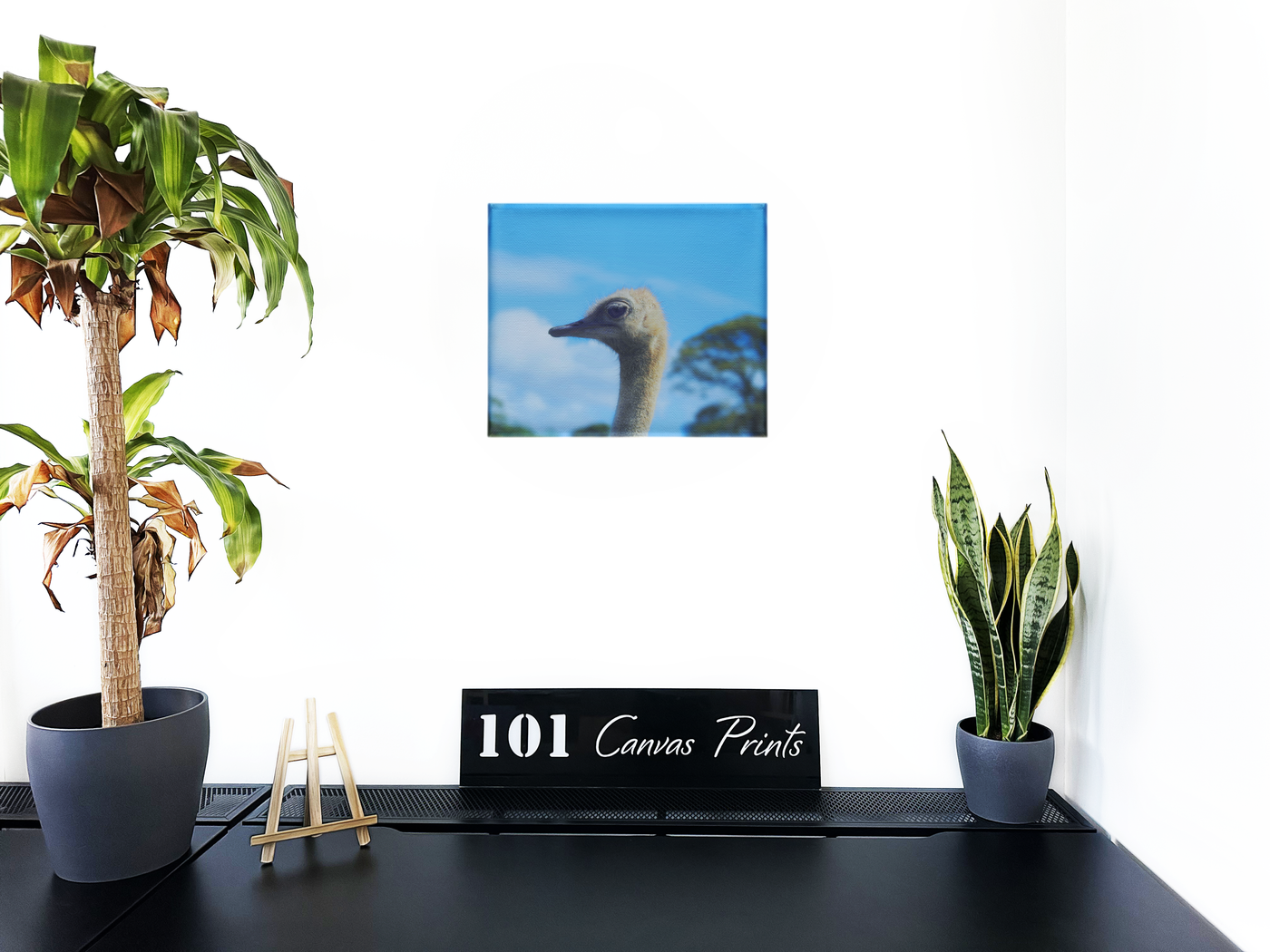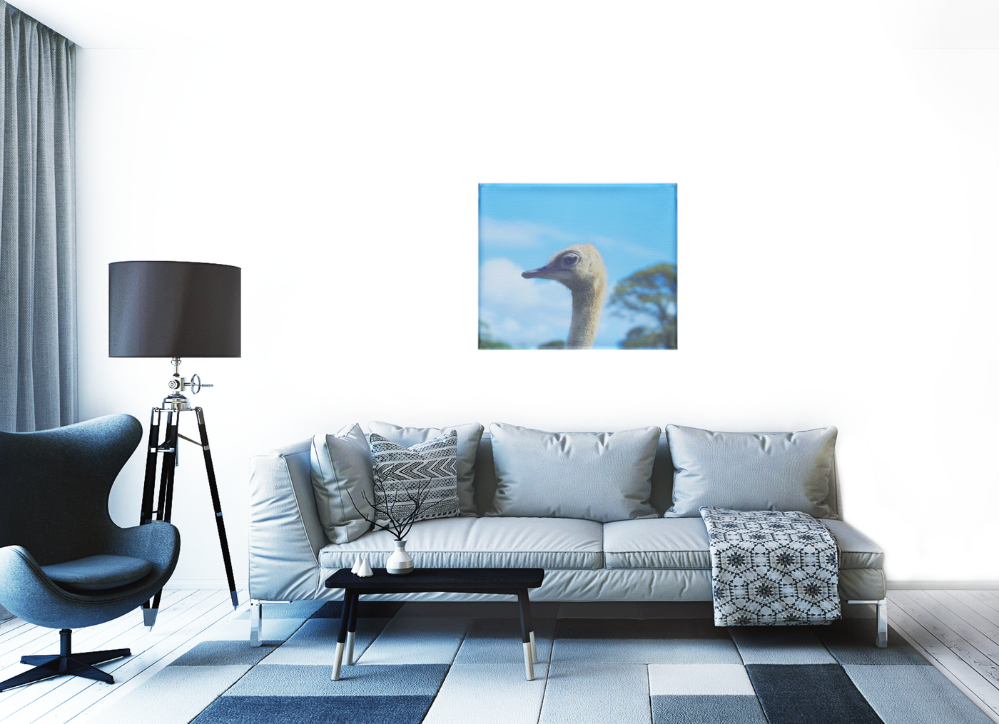Designed for the modern home, this Canvas print makes a great centrepiece in any space. A striking image of a relaxed ostrich against a bright-blue sky is captured in stunning high definition by the 101 Canvas Print team and printed using the highest quality inks and materials. The neutral palette of this piece allows it to blend easily into most decors.
