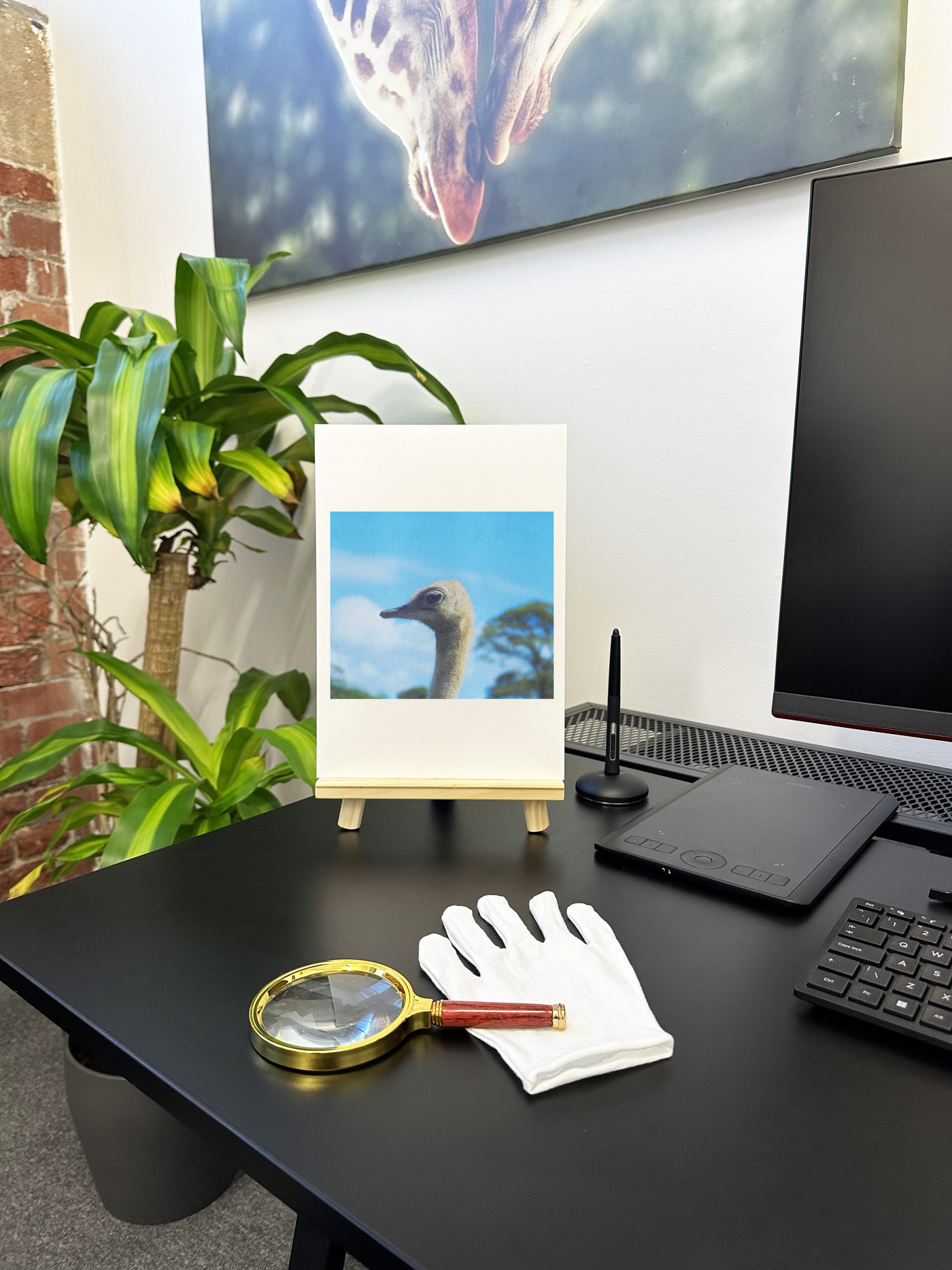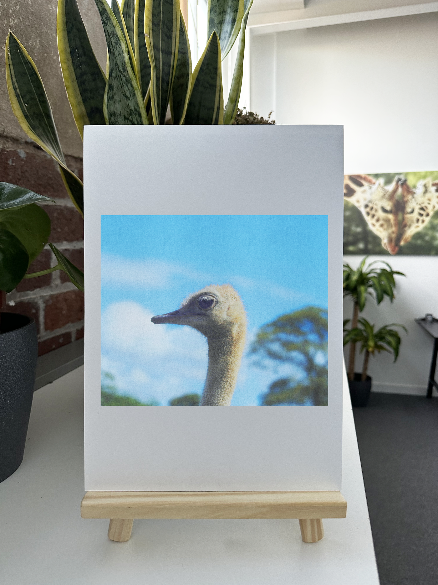 A charming piece of artwork in any home, this Fine Art print of an ostrich's head is beautiful and vibrant in rich, high-definition detail. The beautiful tone of the ostrich is contrasted with a bright blue sky background, creating a stunning combination.