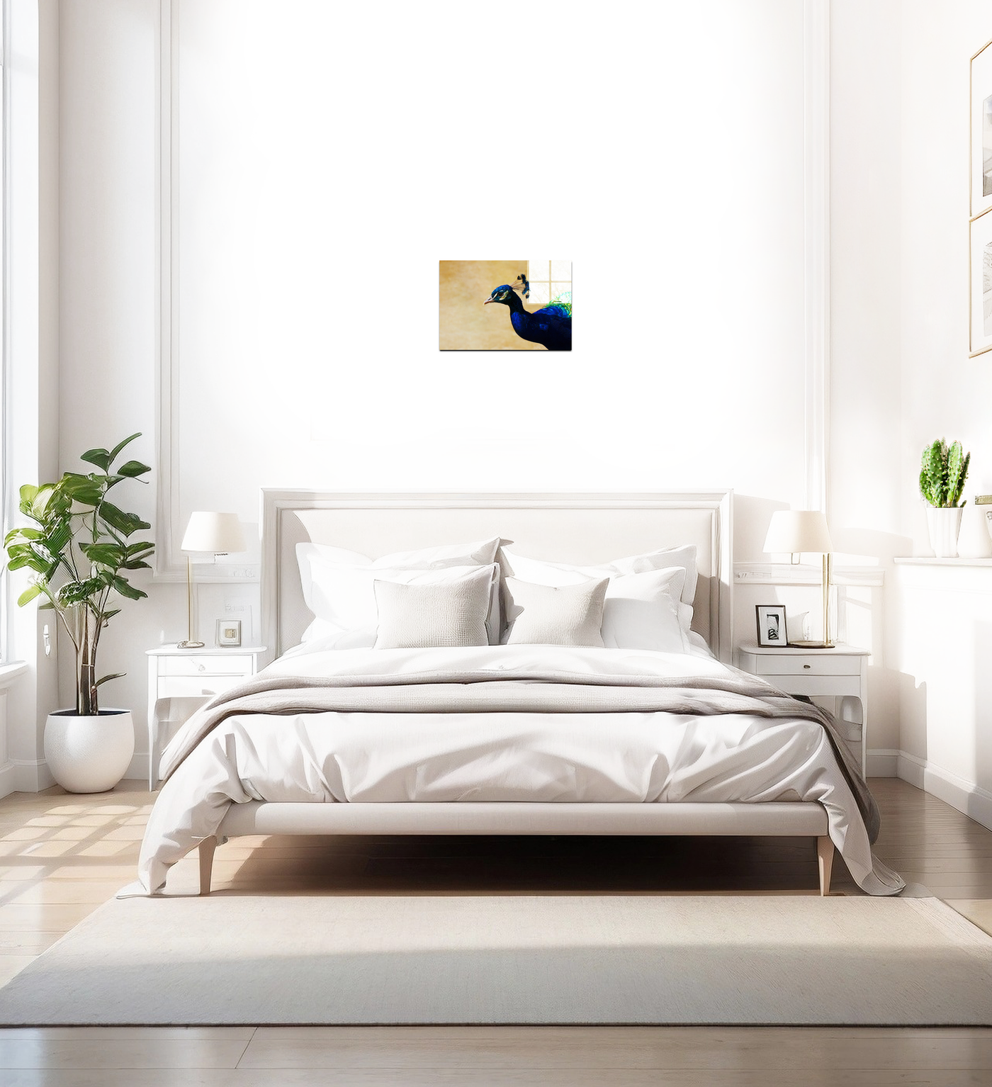 Acrylic art is the ideal way to add colour to your walls and brighten an open space. Our incredible high definition Acrylic print of a peacock against a sandy background will draw interest from anyone passing by. This Acrylic Art piece features vivid colours and bright turquoise hues that pop against the sandy brown backdrop. The muted background creates a subtle, soothing effect that's perfect for any living room, kitchen or bedroom.