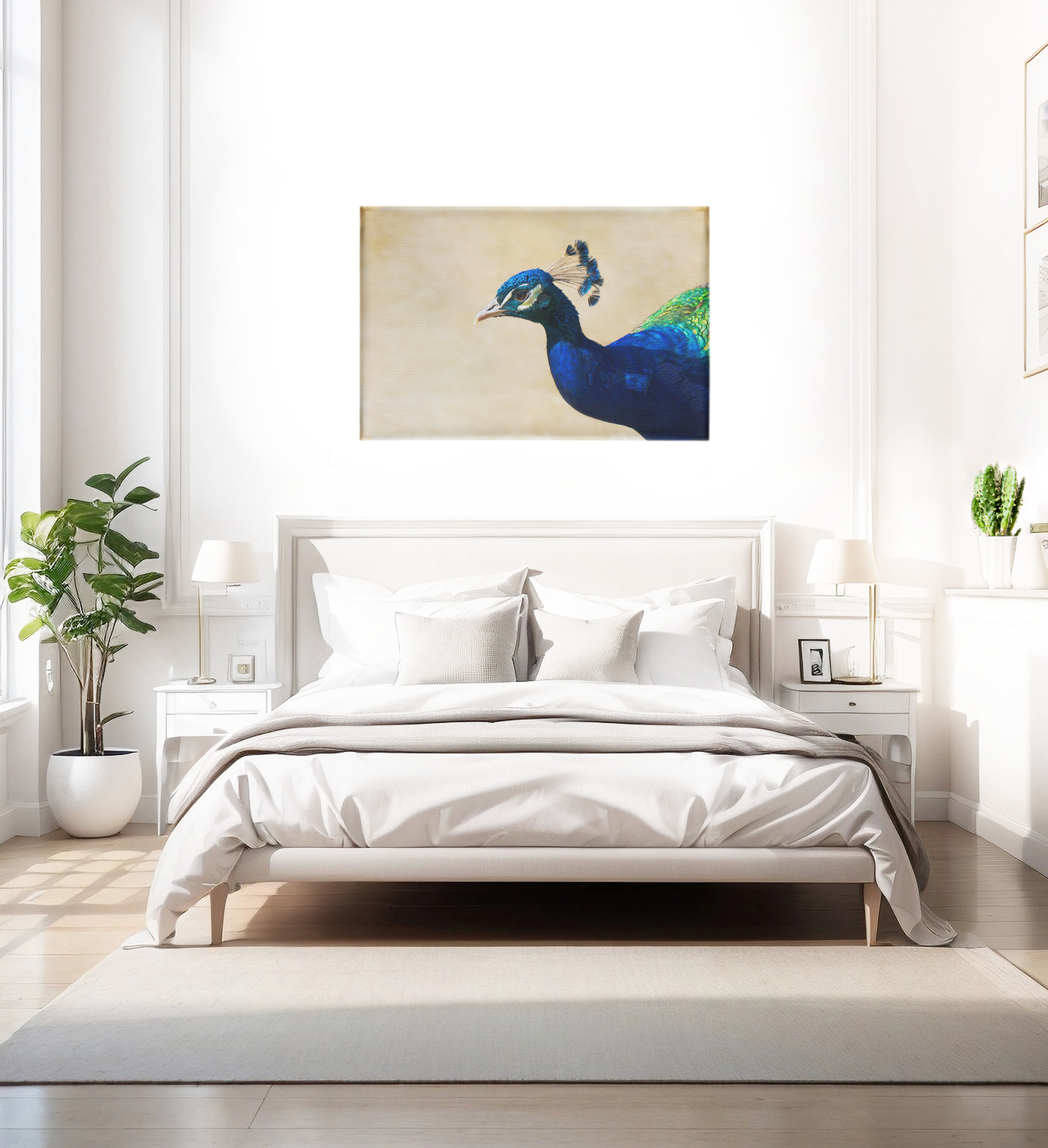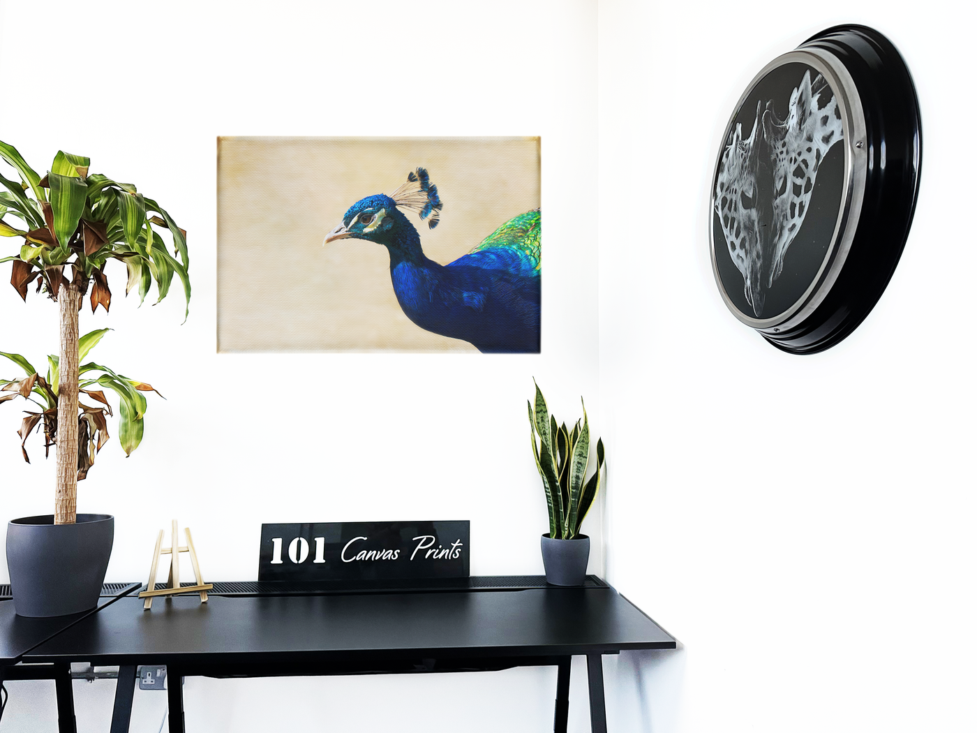 Canvas art is the ideal way to add colour to your walls and brighten an open space. Our incredible high definition print of a peacock against a sandy background will draw interest from anyone passing by. This Canvas Art piece features vivid colours and bright turquoise hues that pop against the sandy brown backdrop. The muted background creates a subtle, soothing effect that's perfect for any living room, kitchen or bedroom.