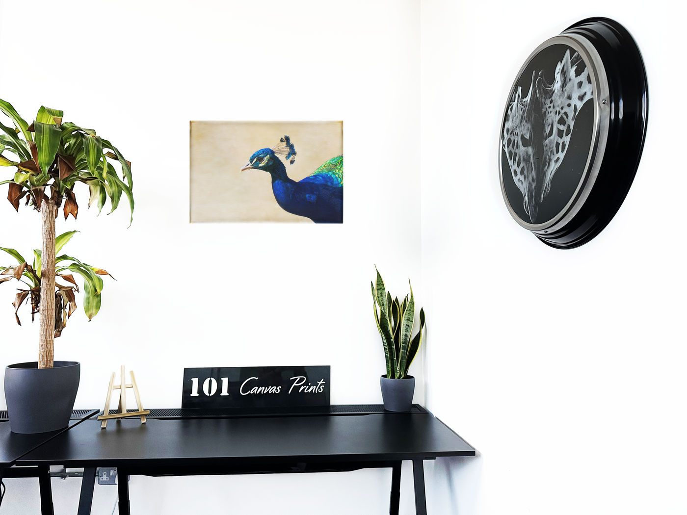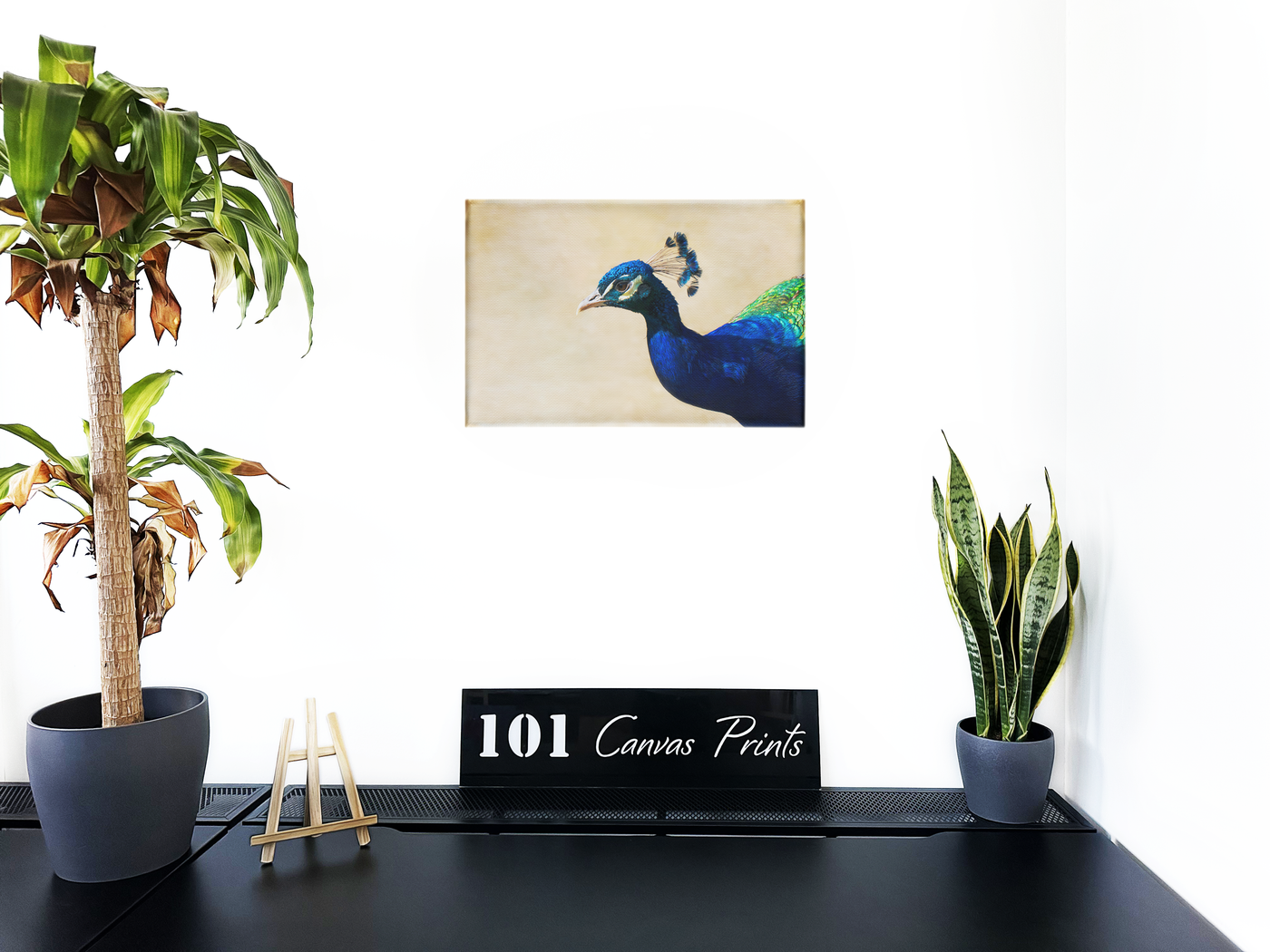 Canvas art is the ideal way to add colour to your walls and brighten an open space. Our incredible high definition print of a peacock against a sandy background will draw interest from anyone passing by. This Canvas Art piece features vivid colours and bright turquoise hues that pop against the sandy brown backdrop. The muted background creates a subtle, soothing effect that's perfect for any living room, kitchen or bedroom.