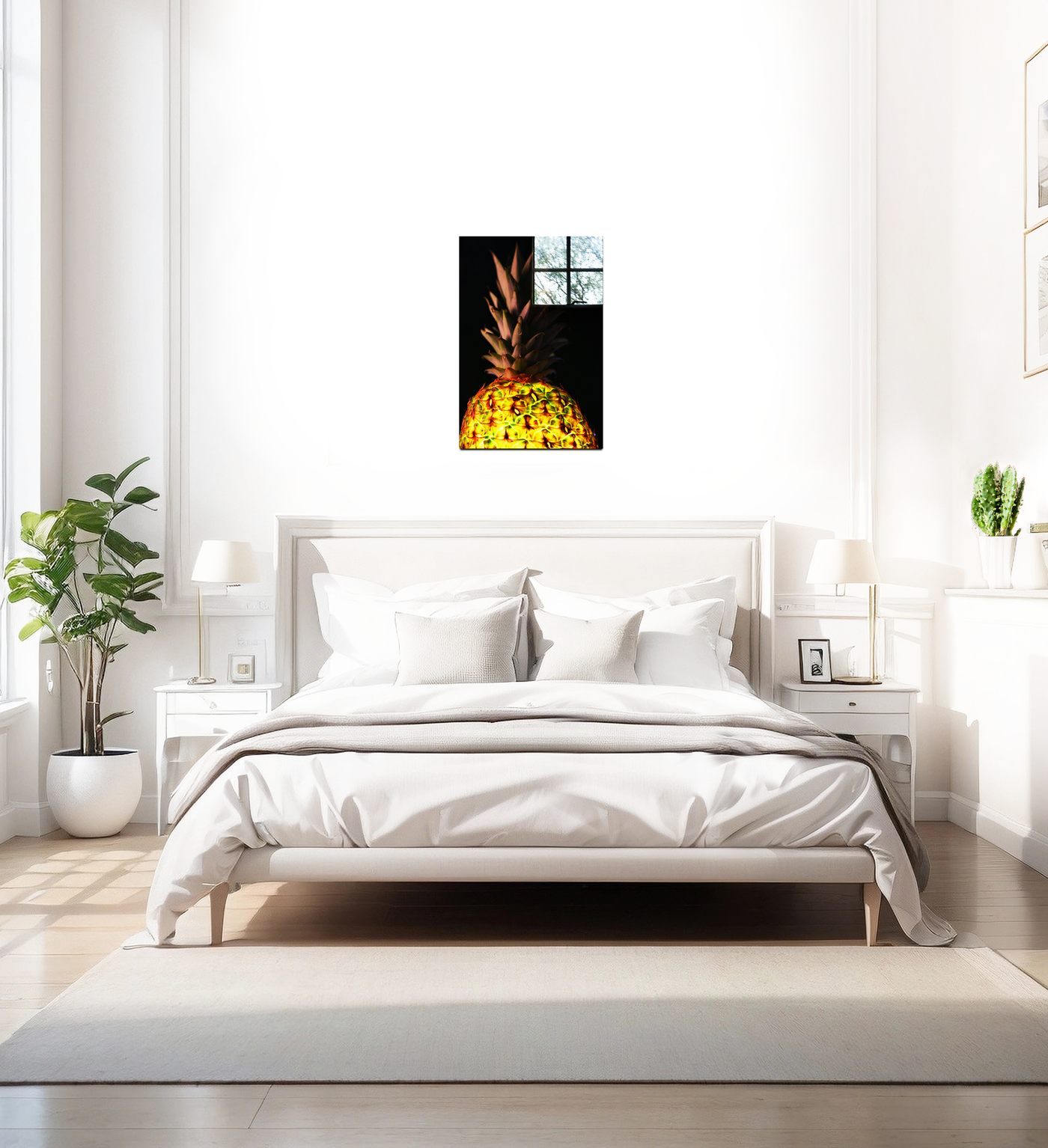 When produced as an acrylic-set print by the skilled 101 Canvas Prints team, this image achieves an even greater level of visual impact. The glossy finish of the Acrylic enhances the pineapple's natural sheen, intensifying its golden glow and creating a striking contrast with the deep, dark background. The result is a piece with a contemporary, almost avant-garde feel that would make a bold statement in a modern kitchen, add a touch of tropical sophistication to a bar area, or serve as an eye-catching focal point in a living room or office. Its unique blend of familiar subject matter and dramatic presentation makes it versatile enough to complement a variety of interior styles, from minimalist to eclectic.