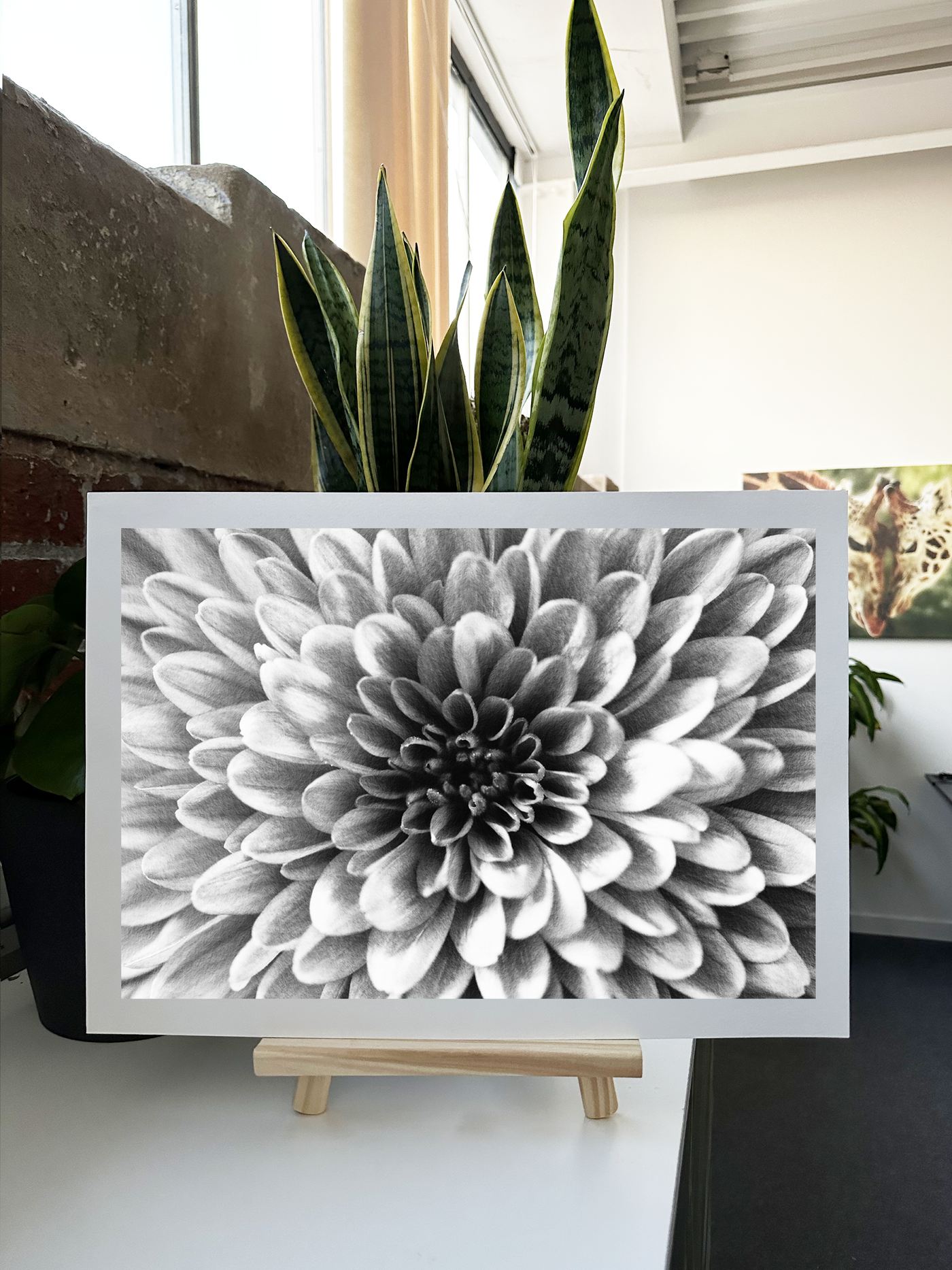 The Monochrome palette celebrates the subtle variations within light silver, from soft blush tones at the petal tips to deeper darker hues near the centre. Our print enhancement team have carefully preserved every nuance of Monochromatic light, capturing the gentle gradients that give each petal its dimensional quality. The way light plays across the flower's surface creates a natural highlighting effect that emphasises its complex structure while maintaining a soft, dreamy quality.