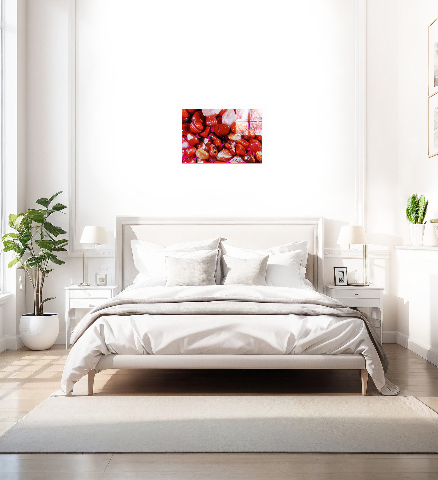 This extraordinary study of polished red stones, expertly reproduced by the 101 Canvas Prints team, transforms these geological specimens into a mesmerising exploration of colour and light. The close-up perspective reveals the fascinating variety within each stone, from their smooth, polished surfaces to the complex internal patterns that speak to their ancient formation. The contemporary pink background adds a bold, modern element that makes these timeless objects feel freshly discovered.