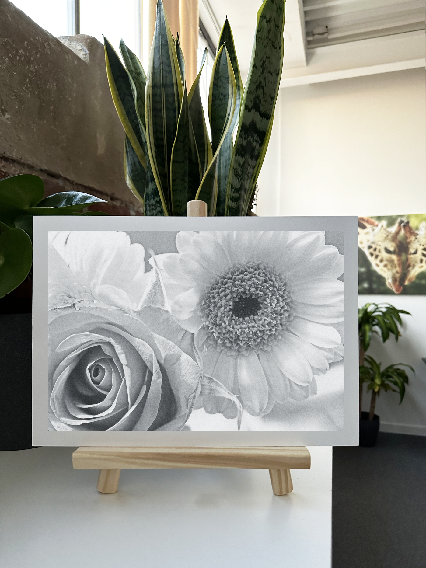 Radiant Blooms: Rose and Gerbera Harmony - Monochrome Fine Art Print - Flowers & Plants Category