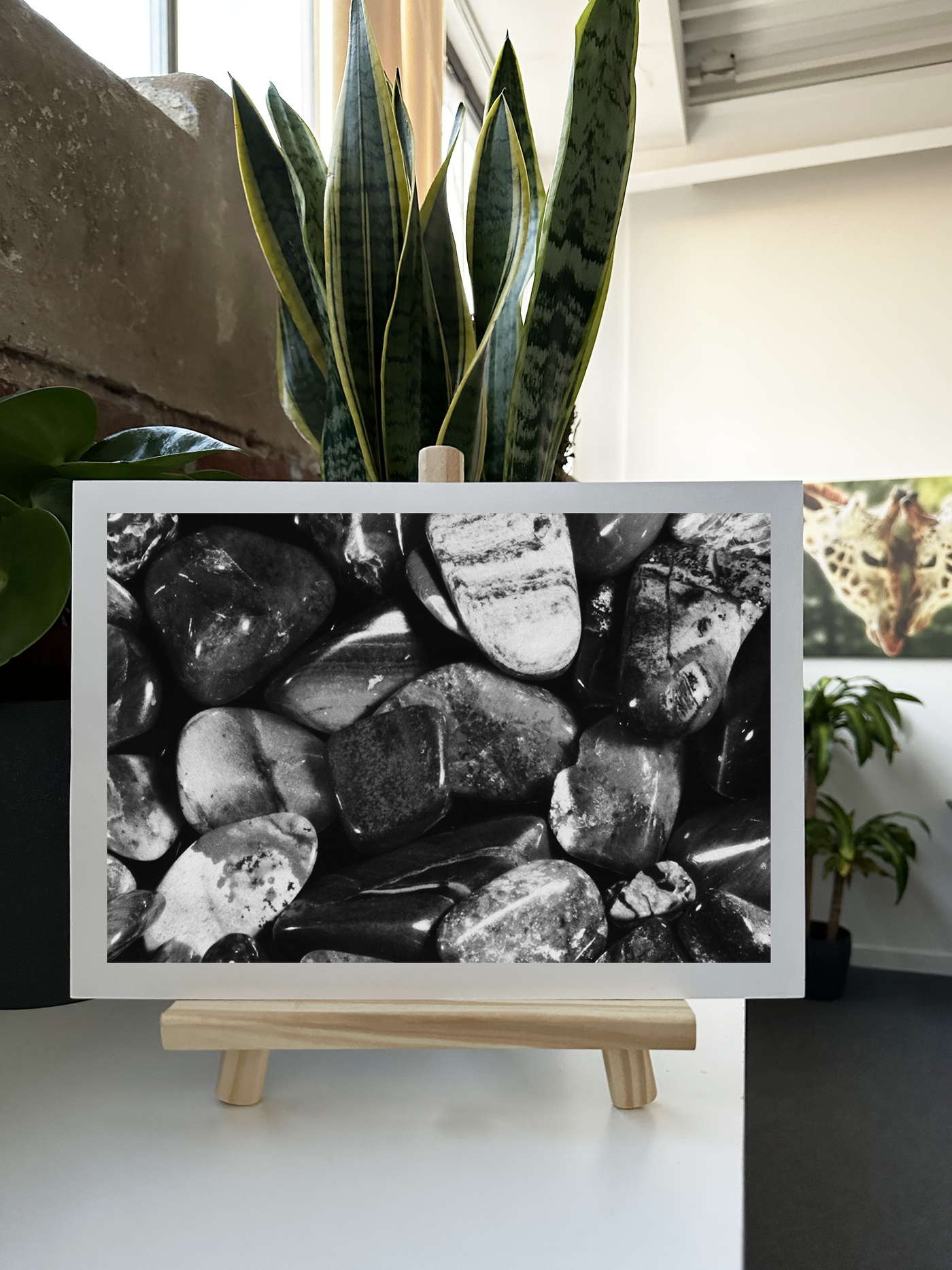 This striking Monochrome Fine Art print offers an intimate view of a diverse collection of polished stones, each one a miniature masterpiece of nature. The composition fills the frame with a vibrant array of pebbles, creating a captivating mosaic of Monochromatic tones, textures, and shapes. From translucent light tones to vivid grey and cool dark gradients, the spectrum of hues is truly breathtaking.