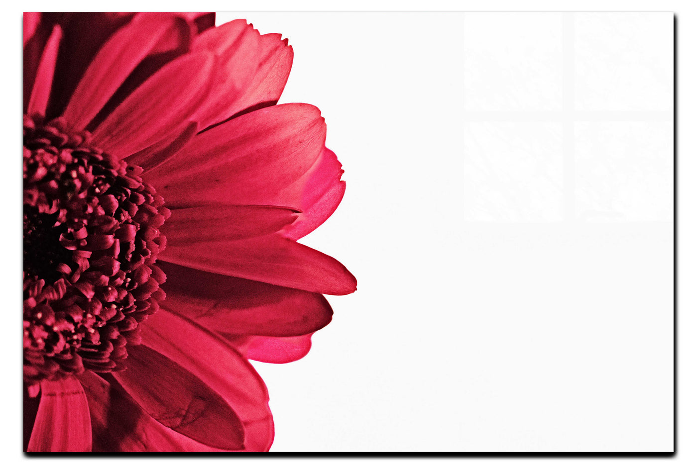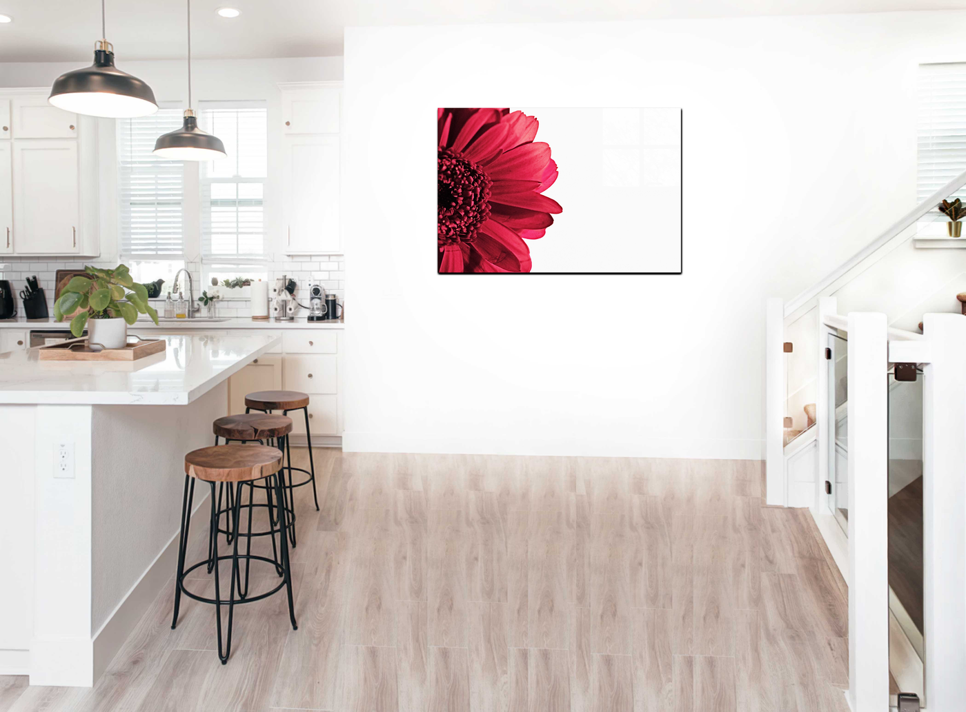 This remarkable botanical study, expertly reproduced by the 101 Canvas Prints team, transforms a simple gerbera daisy into a powerful exploration of colour and form. The composition masterfully balances the intense red of the flower against negative space, creating a modern, gallery-worthy image that speaks to both simplicity and sophistication.