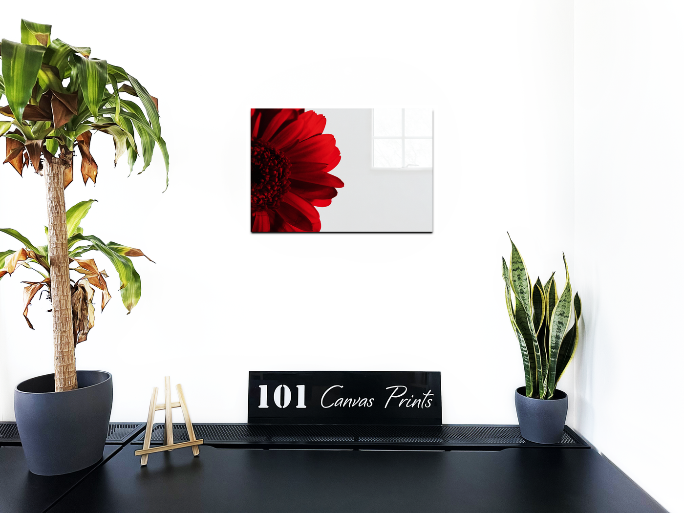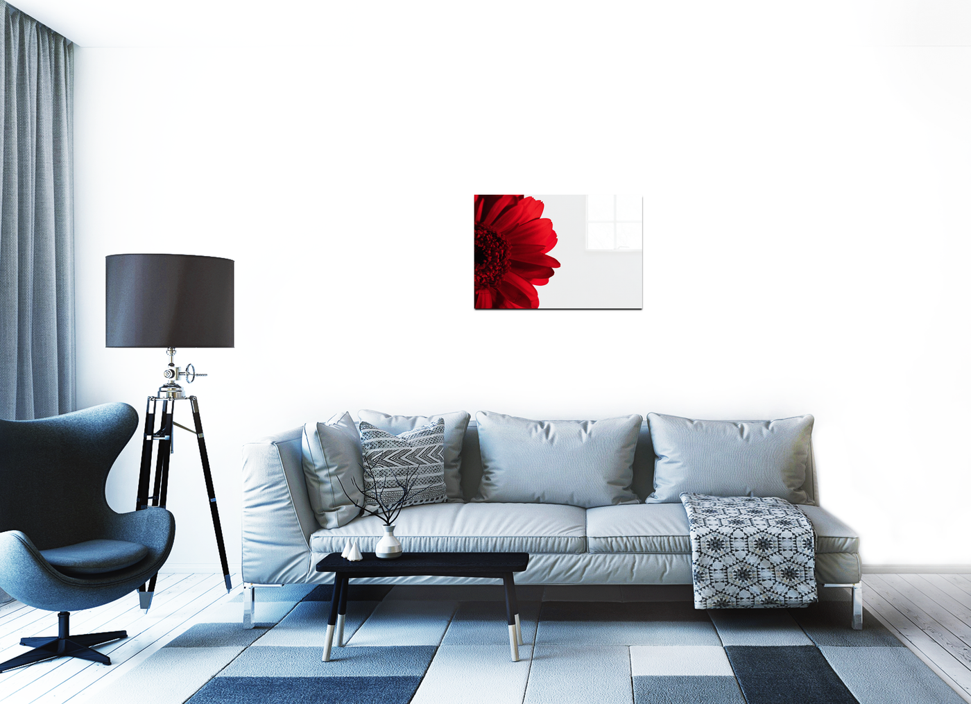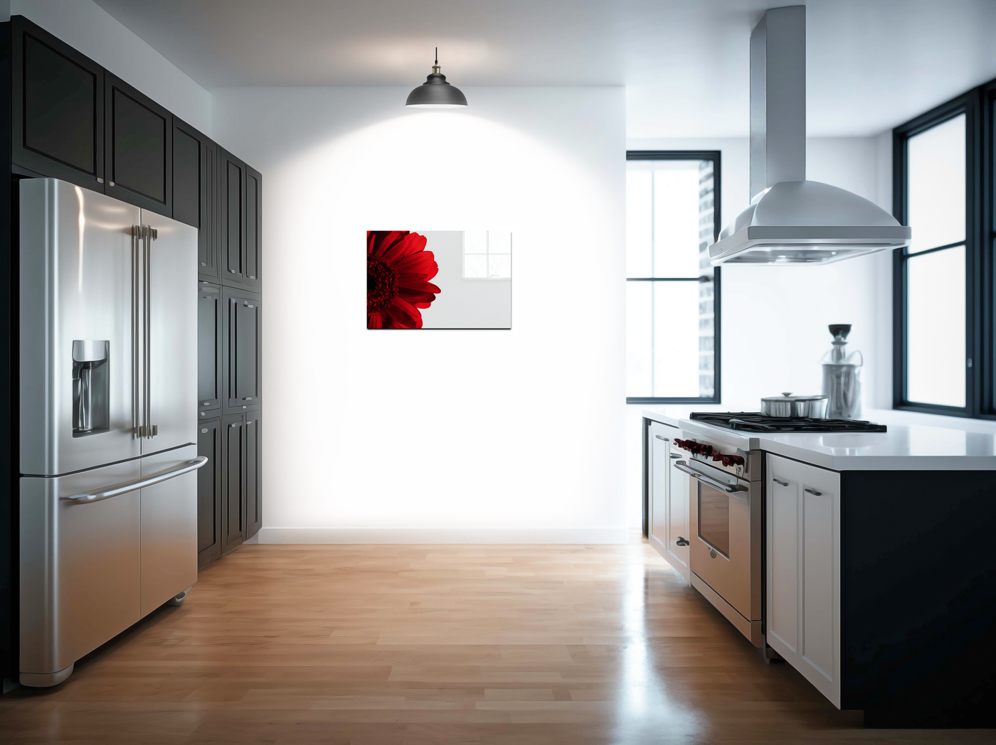 This remarkable botanical study, expertly reproduced by the 101 Canvas Prints team, transforms a simple gerbera daisy into a powerful exploration of colour and form. The composition masterfully balances the intense red of the flower against negative space, creating a modern, gallery-worthy image that speaks to both simplicity and sophistication.