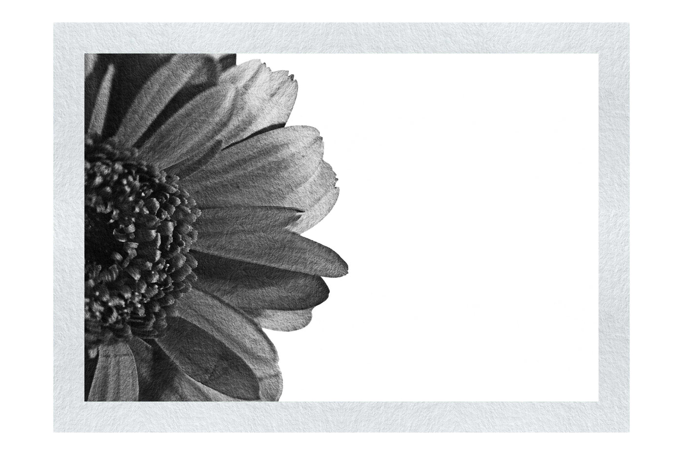 Masterfully captured by the 101 Canvas Prints photography team, this striking composition presents a bold study in contrast, featuring a Monochromatic gerbera daisy against a pristine white background. The photograph focuses on just a portion of the flower, allowing its dramatic Monochrome toned petals and intricate centre to create a powerful asymmetrical composition.
