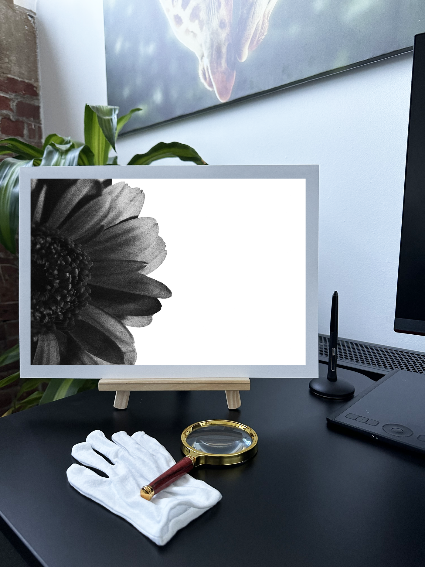 Our carefully handmade monochrome fine art prints are produced on Hahnemühle 308 matte cotton rag paper using Epson archival inks for exceptional detail and color accuracy. Each print features clean, precise edges and a textured surface that brings depth and richness to your chosen artwork, creating a gallery-worthy presentation.
