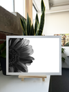 The Monochrome palette is masterfully reduced to its essential elements: rich, velvety light silver hues set against pure white, creating a study in dramatic contrast. Our print enhancement team have preserved every subtle detail of the flower's texture, from the smooth, matte surface of each petal to the complex architecture of its centre. The gradual deepening of the Monochrome tones from petal tips to centre creates a sense of depth that draws the viewer into the composition.