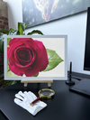 Reproduced on our premium Fine Art print material, this botanical portrait takes on an additional layer of artistic refinement. The natural, matte finish of the Fine Art print perfectly complements the rose's soft textures while providing subtle depth to both the deep reds and vibrant greens. This piece would make a beautiful addition to any space where classic elegance is desired, from a romantic bedroom to a sophisticated living area, where its timeless appeal can create an atmosphere of enduring beauty.