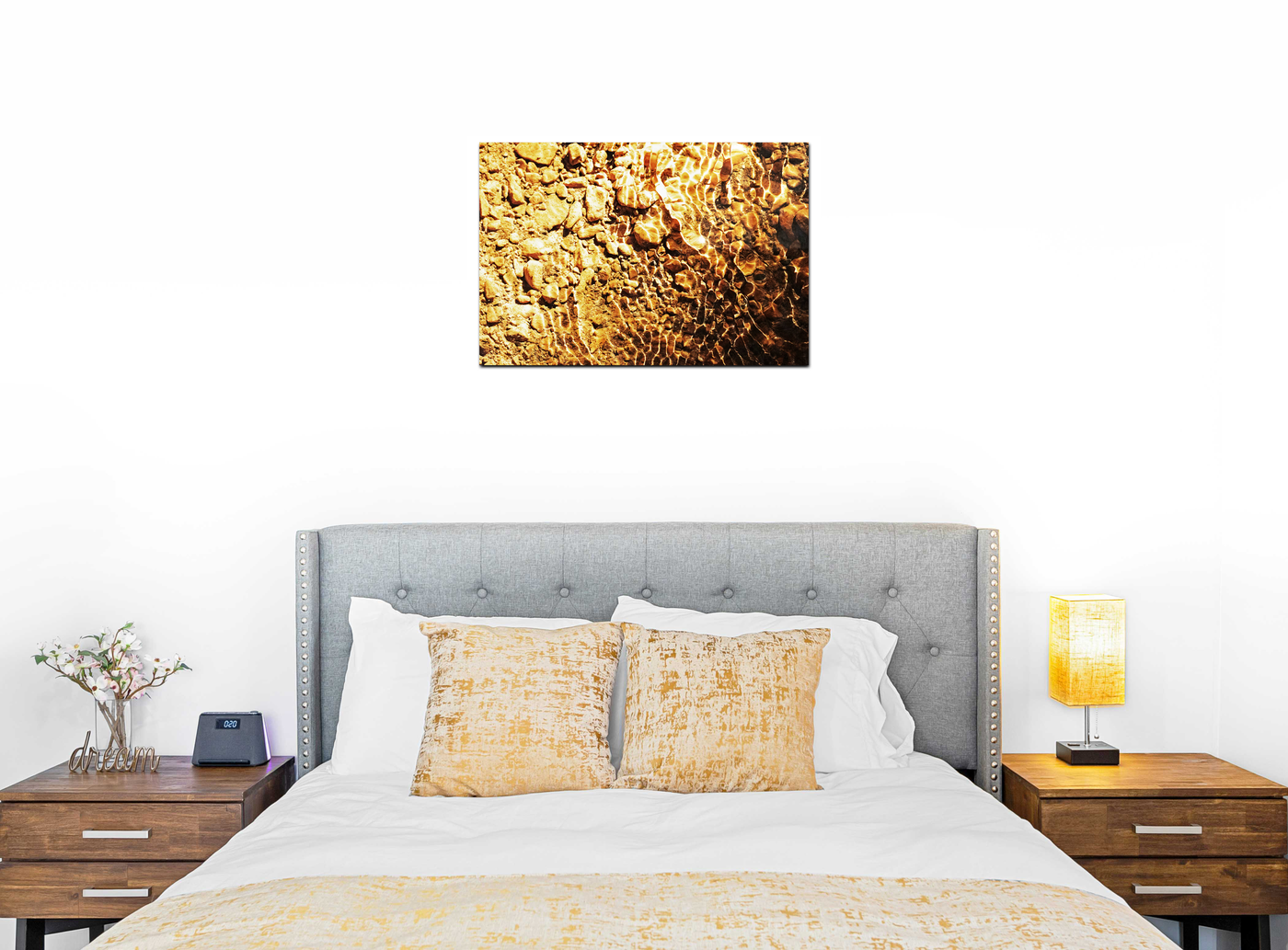 The photographer's mastery of light brings out an incredible range of golden tones, from brilliant highlights that seem to shimmer with their own inner light to rich, amber shadows that add depth and mystery. Through our precise photography and print enhancement process, we've maintained every subtle variation in texture and tone, ensuring that the complex interplay of light and water is preserved with perfect clarity. The result is an image that seems to capture liquid light itself.