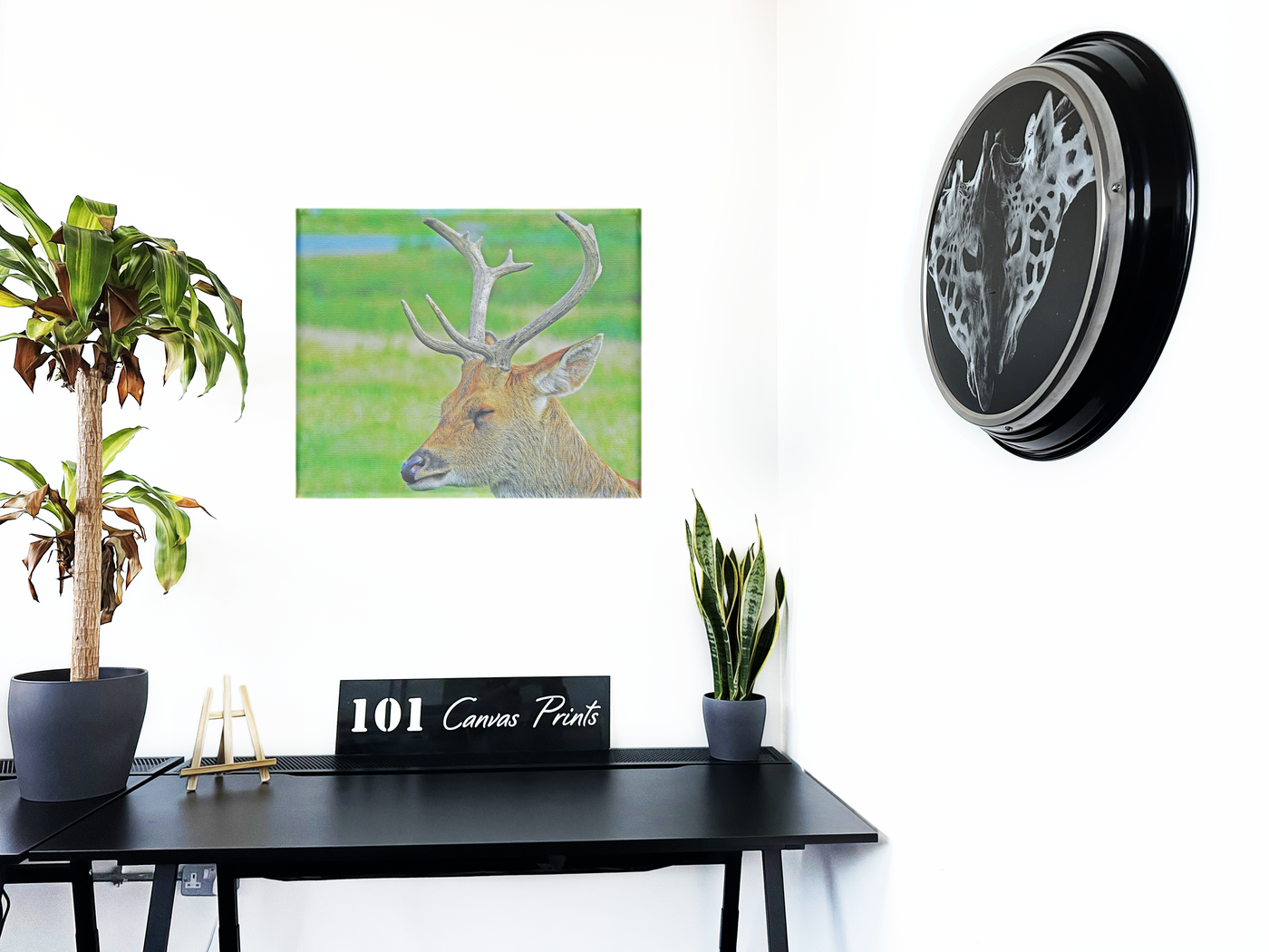 This Canvas Art print of a spring deer is the perfect choice for those that love nature, photography or alternatively could be used as a stunning piece of wall art to enhance a living room setting.