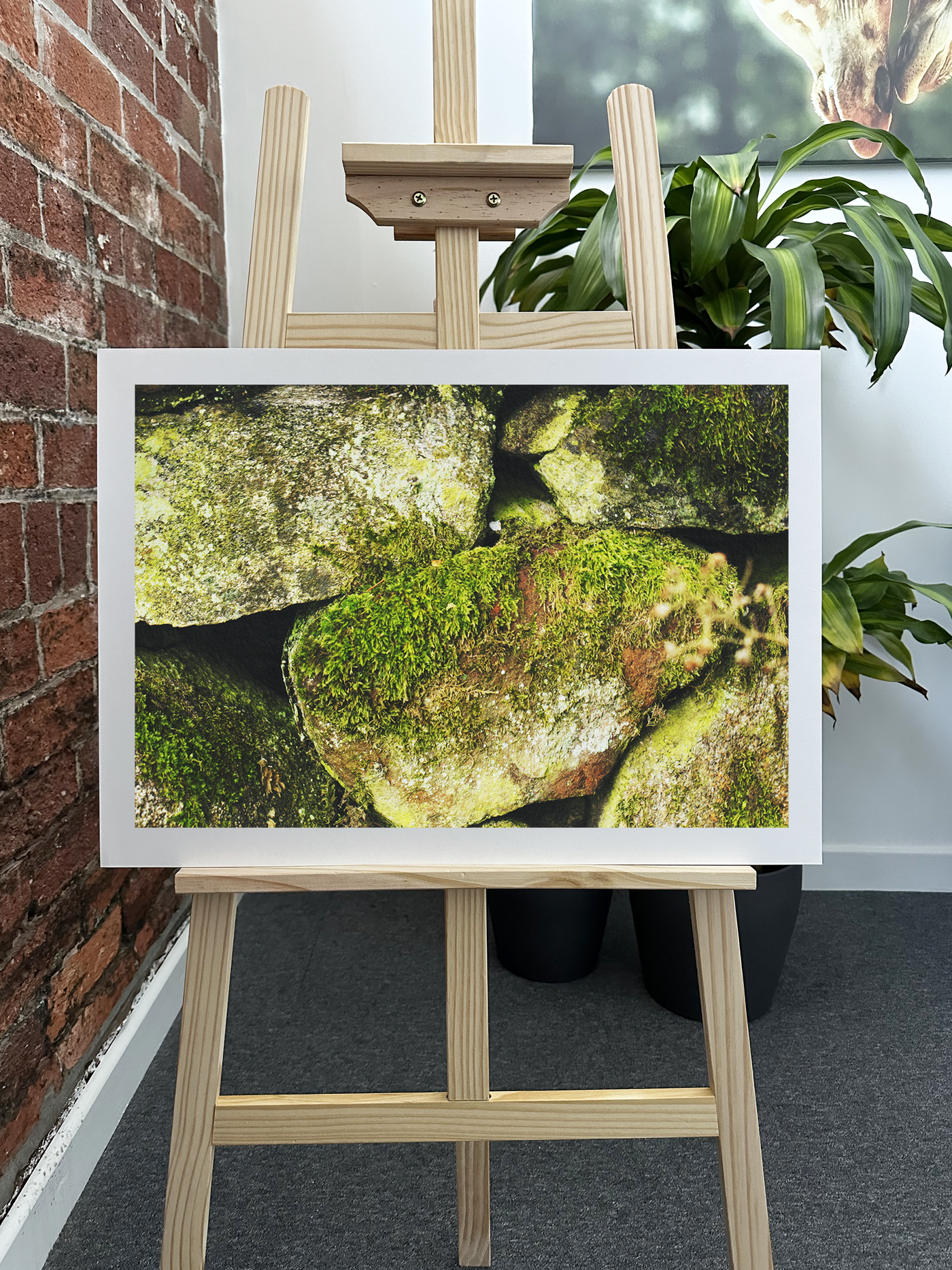 On Fine Art paper, this image takes on a remarkable tactile quality. The natural texture of the Fine Art print complements the organic subject matter, enhancing the perceived softness of the moss and the rugged texture of the stones. The matte finish of the Fine Art paper softens the contrasts slightly, creating a serene, almost meditative atmosphere that invites contemplation. This print would be an excellent addition to a nature-inspired interior, bringing a touch of forest tranquillity to any space. It could serve as a calming focal point in a living room, add a sense of grounding to a home office, or bring a slice of the natural world into an urban apartment.