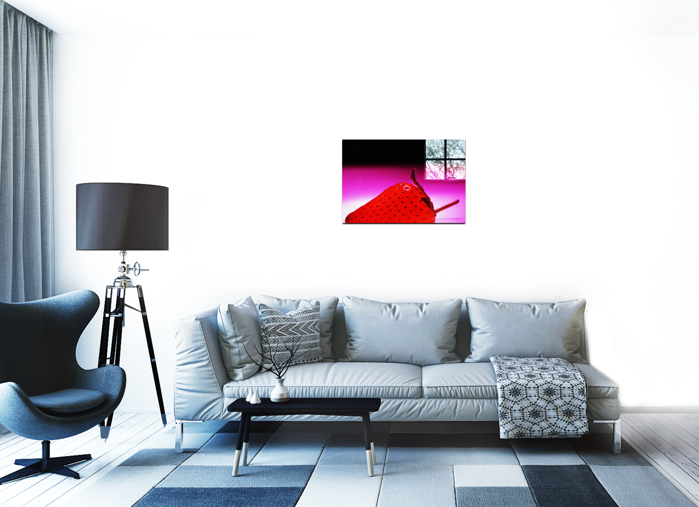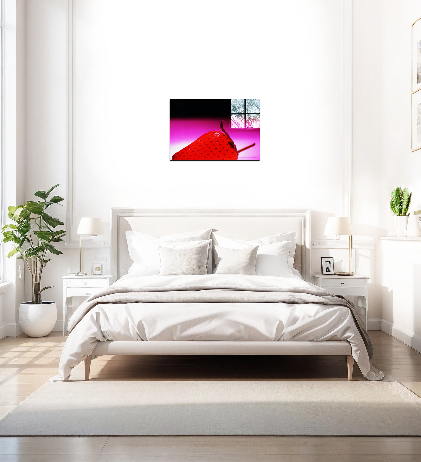 Our photographers have captured this perfect example of a ripe summer strawberry in high definition. This has also created an exceptional shallow depth of field, which allows the backlighting to melt away into an opulent gradient of warm pinks and heavier, regal purples.