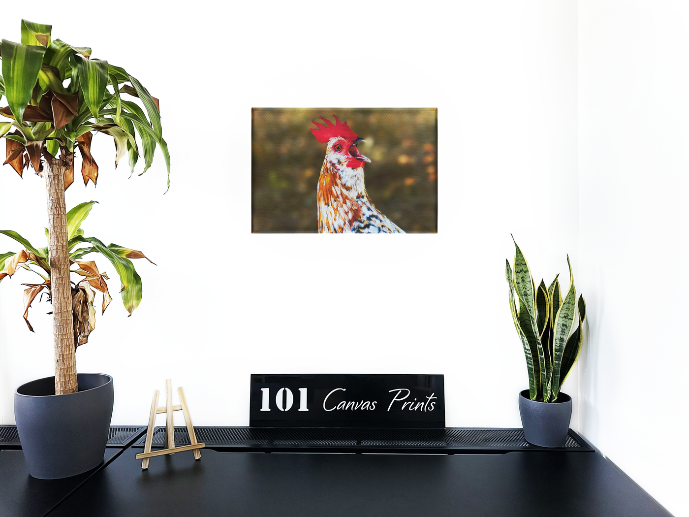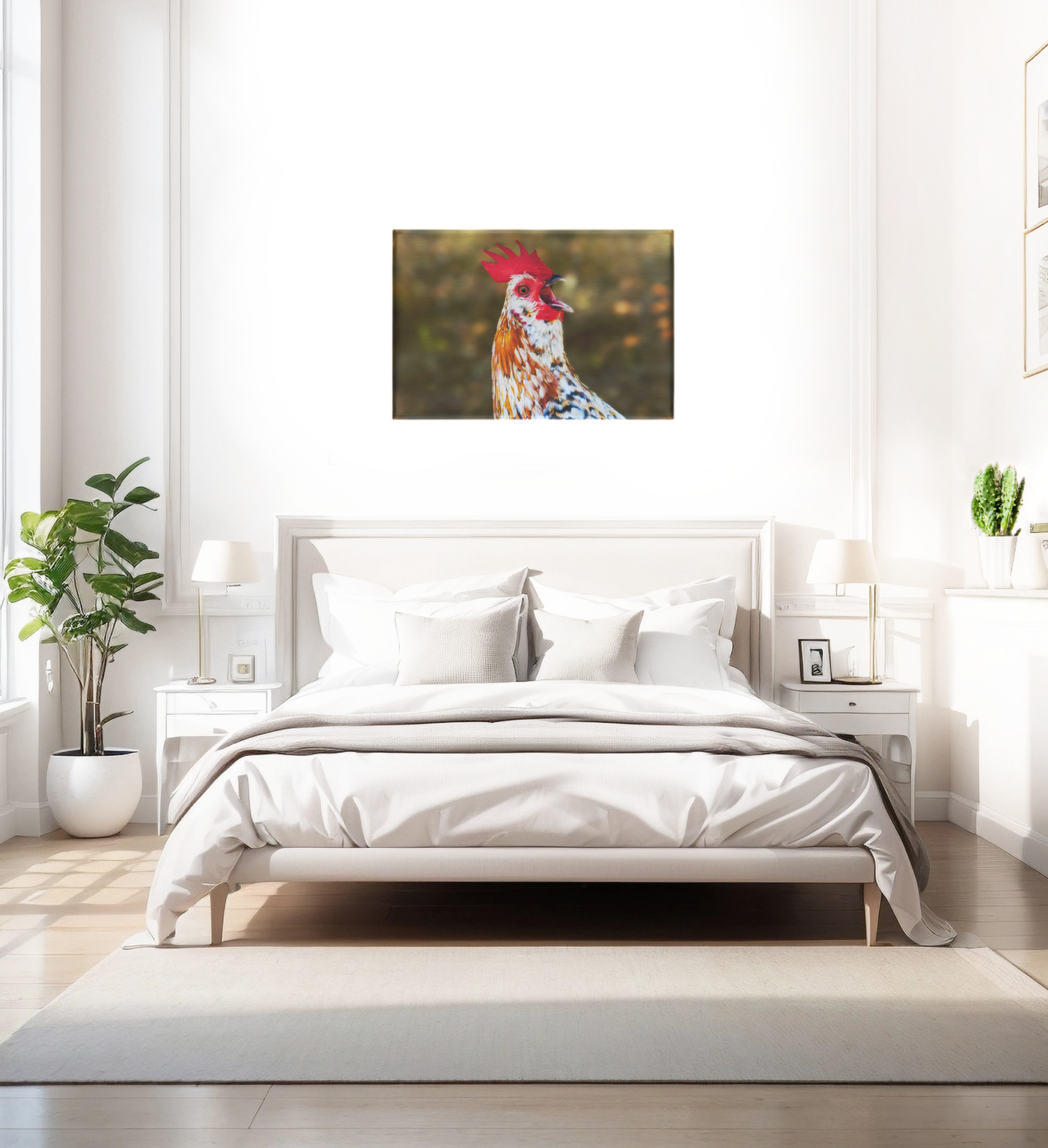 The key to any home is the striking artwork. This Canvas Art print features a surprised hen, captured in a lifelike manner that's both beautiful and real.