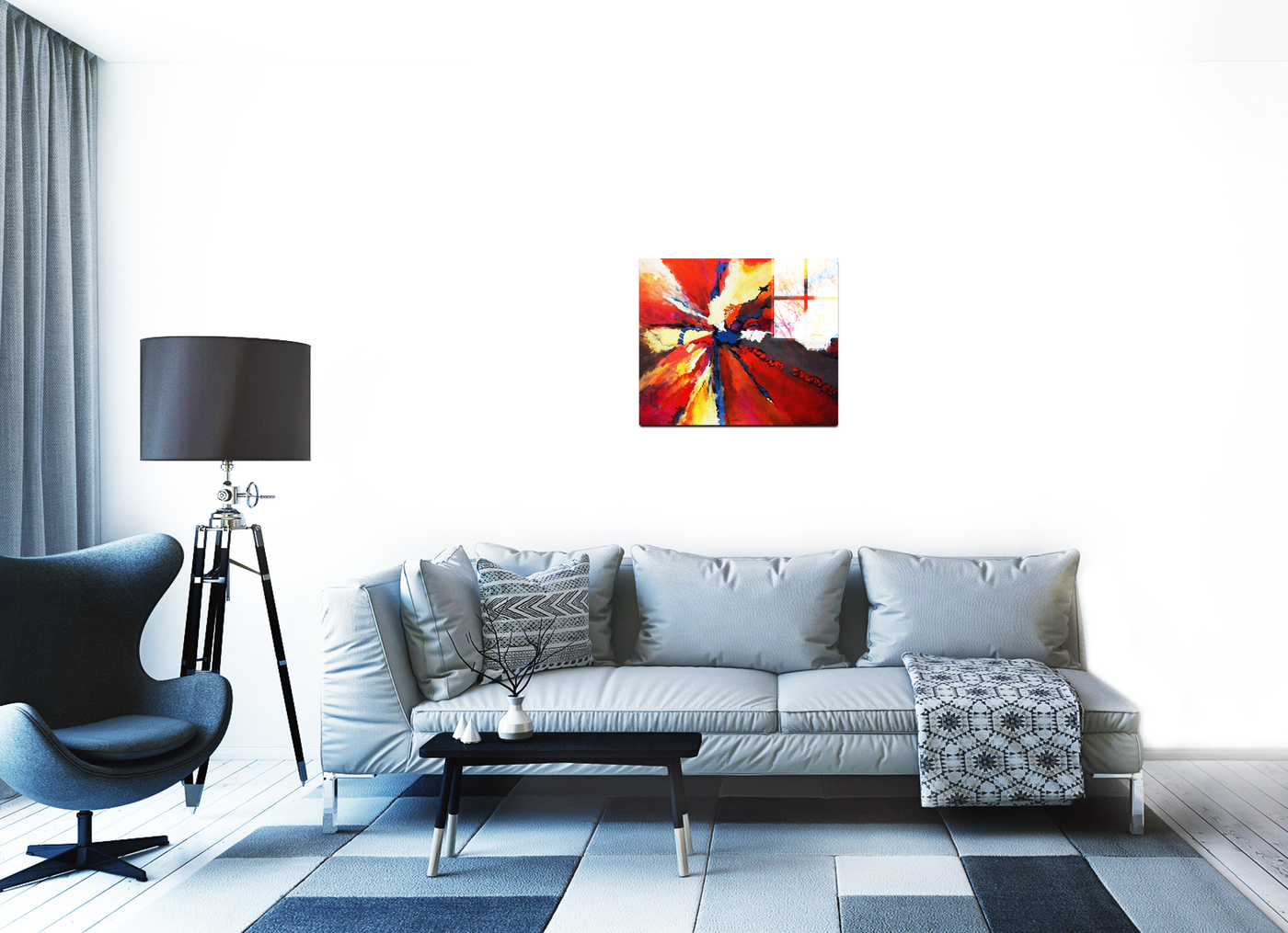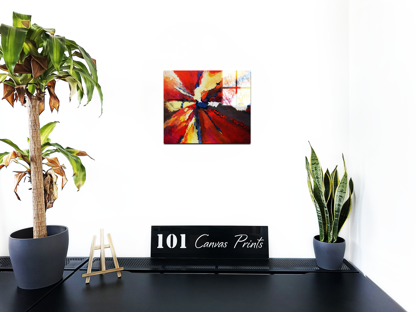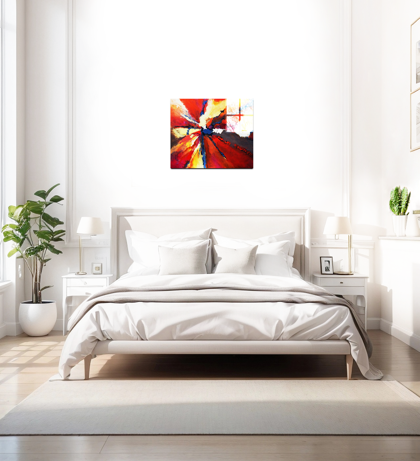 When rendered in our high-end Acrylic medium, this piece achieves an almost supernatural brilliance. The Acrylic's crystal-clear surface dramatically enhances the vibrancy of every colour, while its reflective qualities add a fascinating dimensional aspect that mirrors the depth of space itself. The glossy finish creates an almost liquid appearance that makes the explosive energy of the piece seem to float in space, amplifying its impact. This stunning artwork would make a magnificent centrepiece in any contemporary space, from a modern art gallery to an executive office, where its message about the beauty of creation and evolution can inspire deep reflection.