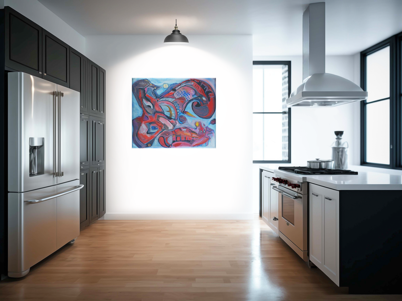In this powerful abstract narrative, expertly captured by the 101 Canvas Prints photography team, "The Harlequin and the Dead Dragon" presents a compelling interpretation of the eternal struggle between good and evil. The composition weaves together dynamic forms suggesting both the playful agility of the Harlequin and the fallen form of the vanquished dragon. Through abstract shapes and flowing lines, the artist has created a sophisticated allegorical battle scene that transcends traditional representation.