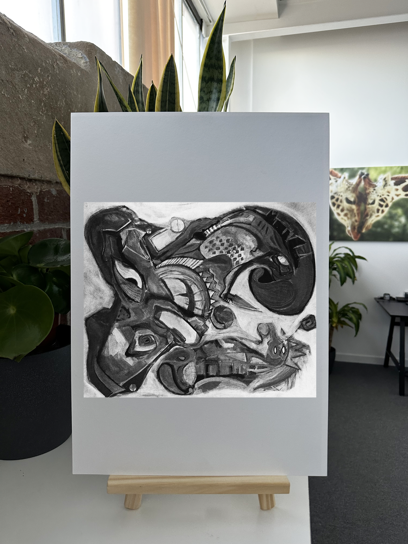 The Harlequin and the Dead Dragon - LEDESMA Artwork - Monochrome Fine Art Print - Abstract Category