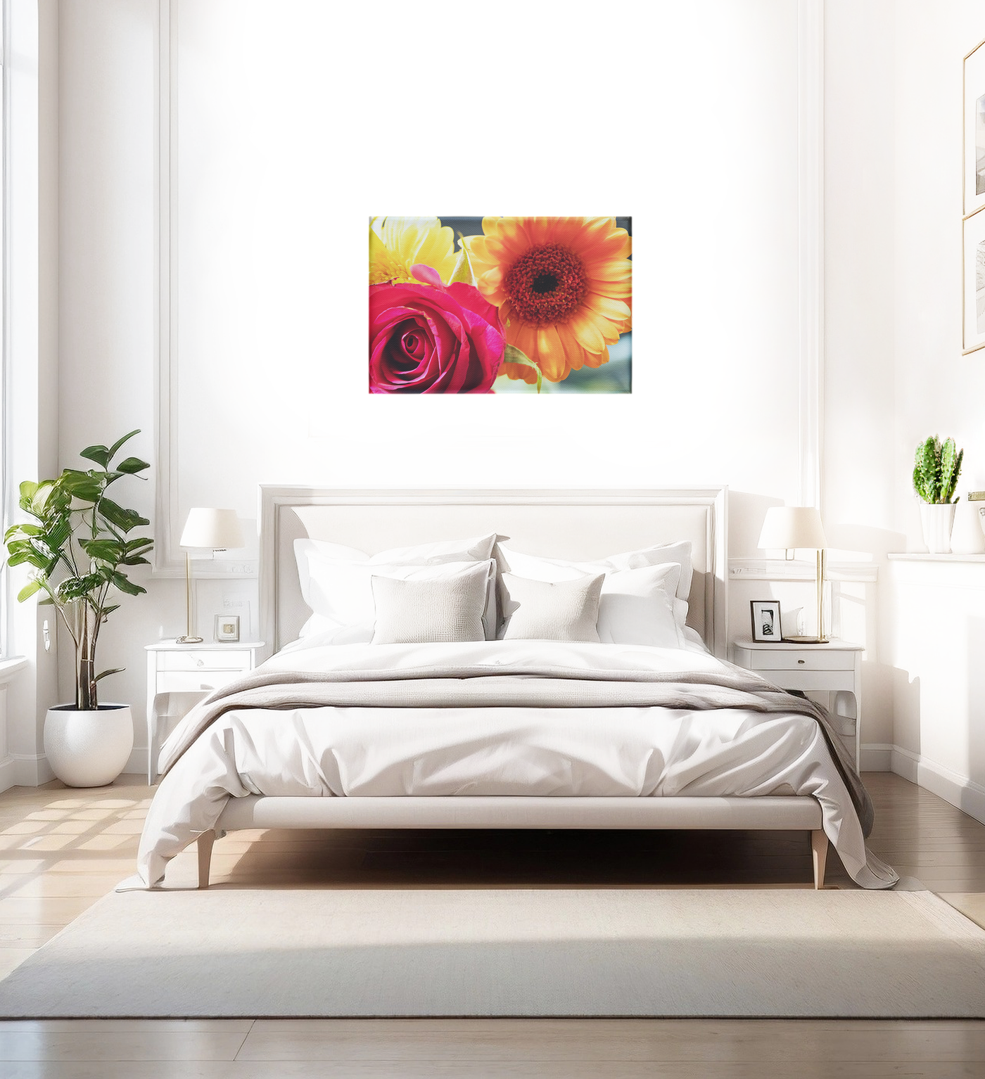 Radiant Blooms: Rose and Gerbera Harmony - Canvas Print - Flowers & Plants Category