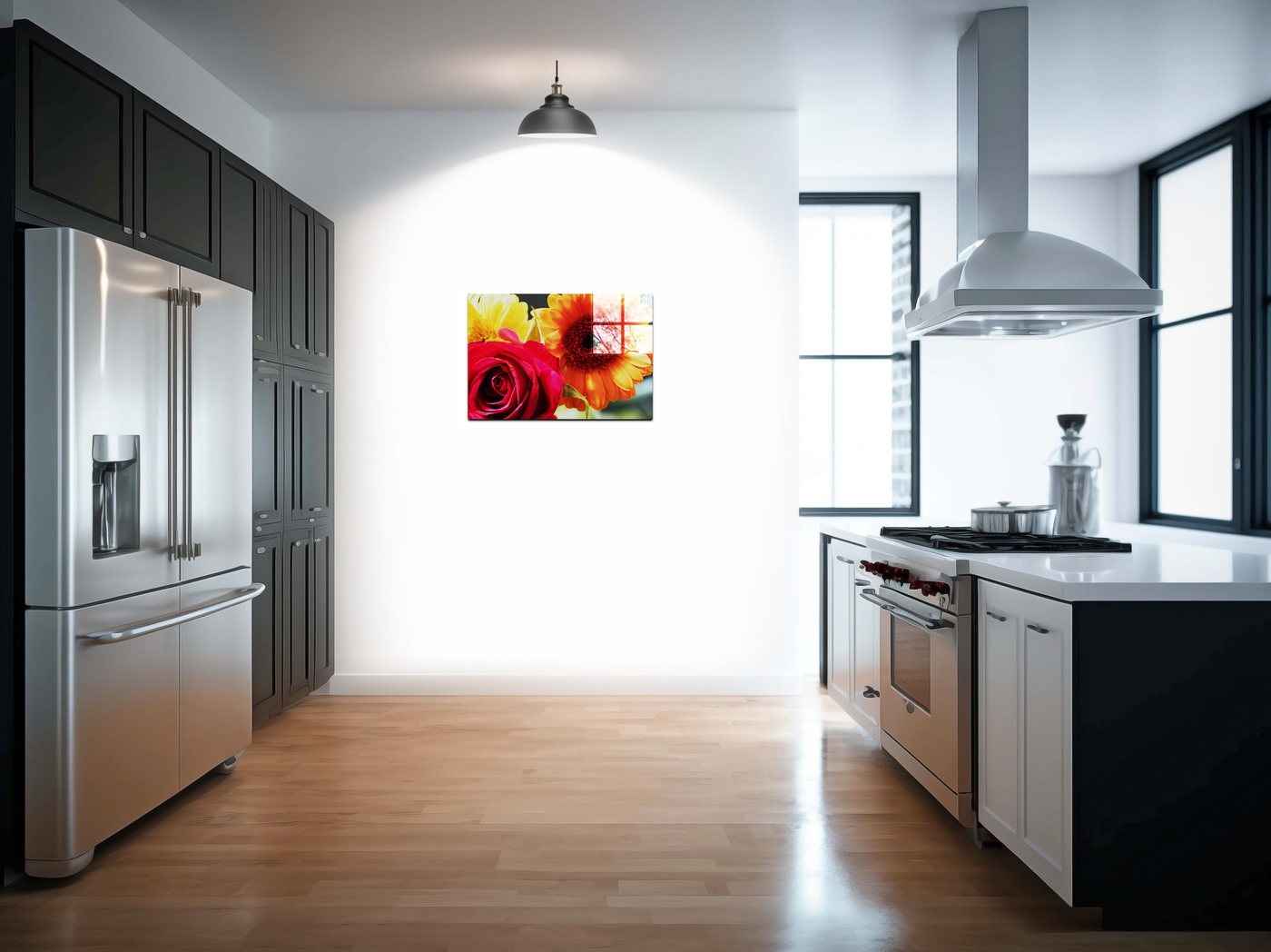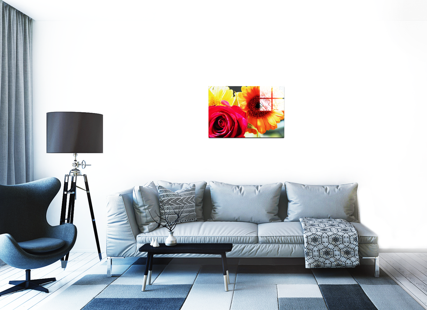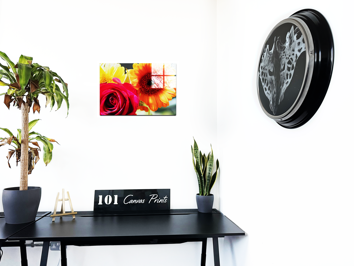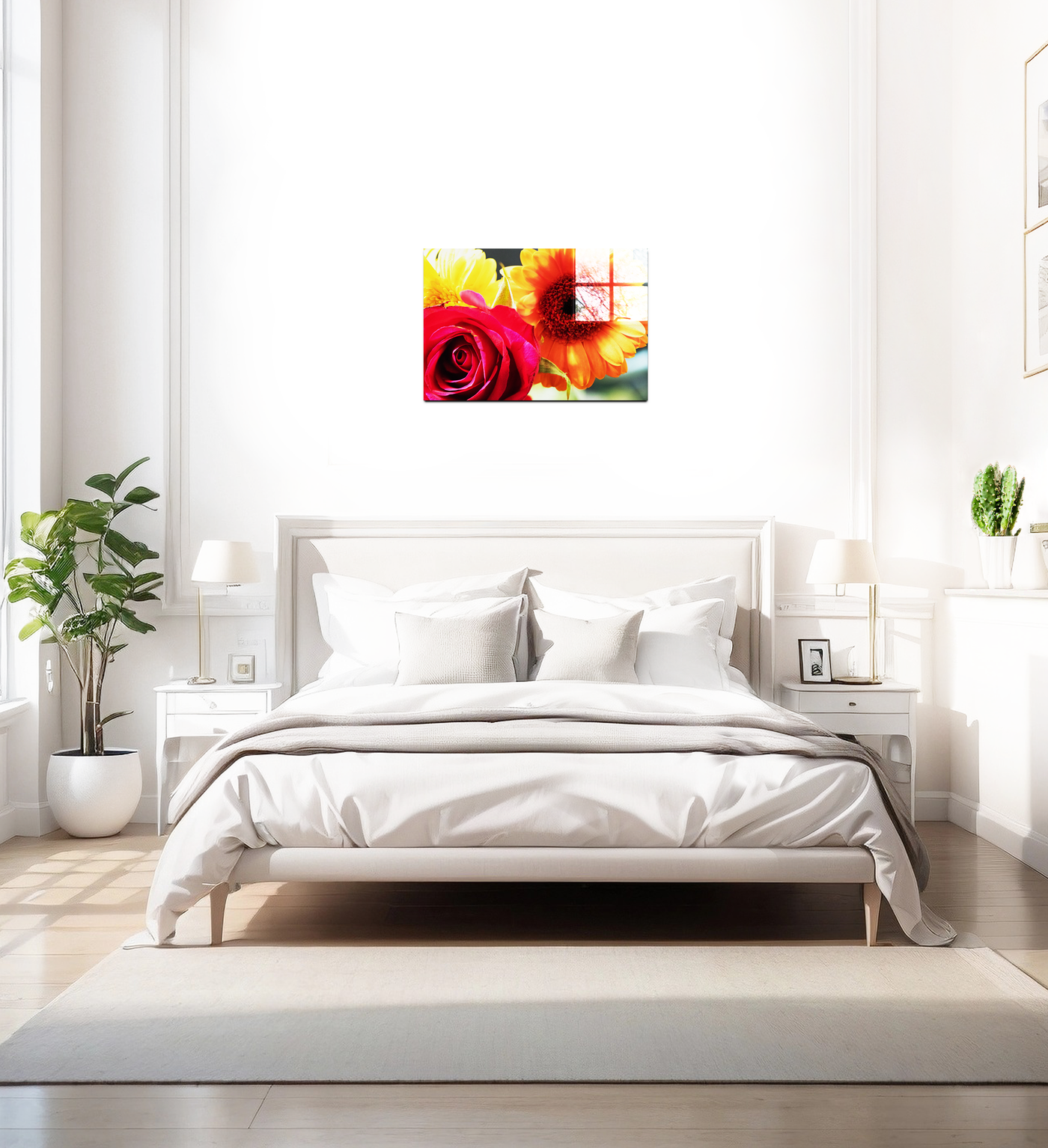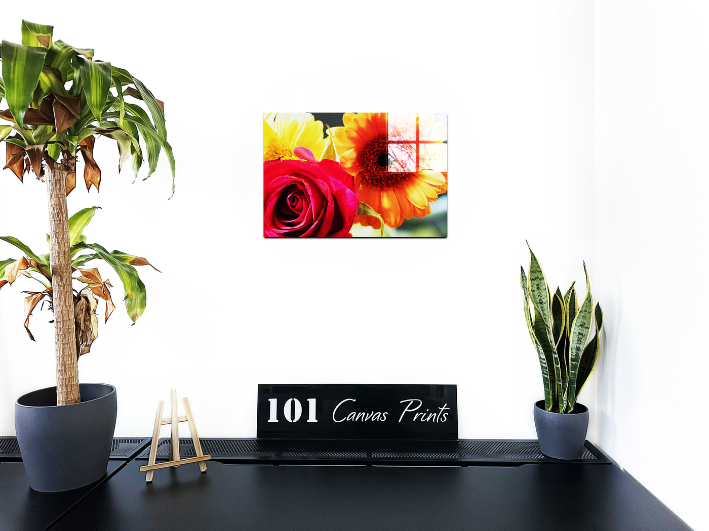 Set in Acrylic, this image takes on a new dimension of brilliance. The glossy finish enhances the vibrancy of every hue, making the colours pop with unprecedented intensity. The Acrylic's crystal-clear surface creates an illusion of depth, as if viewers could reach out and touch the silky petals. This stunning piece would make a striking statement in any modern interior, particularly in spaces that benefit from a burst of colour and life. Imagine it gracing the wall of a minimalist dining room or adding a touch of natural splendour to a contemporary office – wherever it's placed, this acrylic-set print is sure to draw the eye and lift the spirit with its radiant beauty.