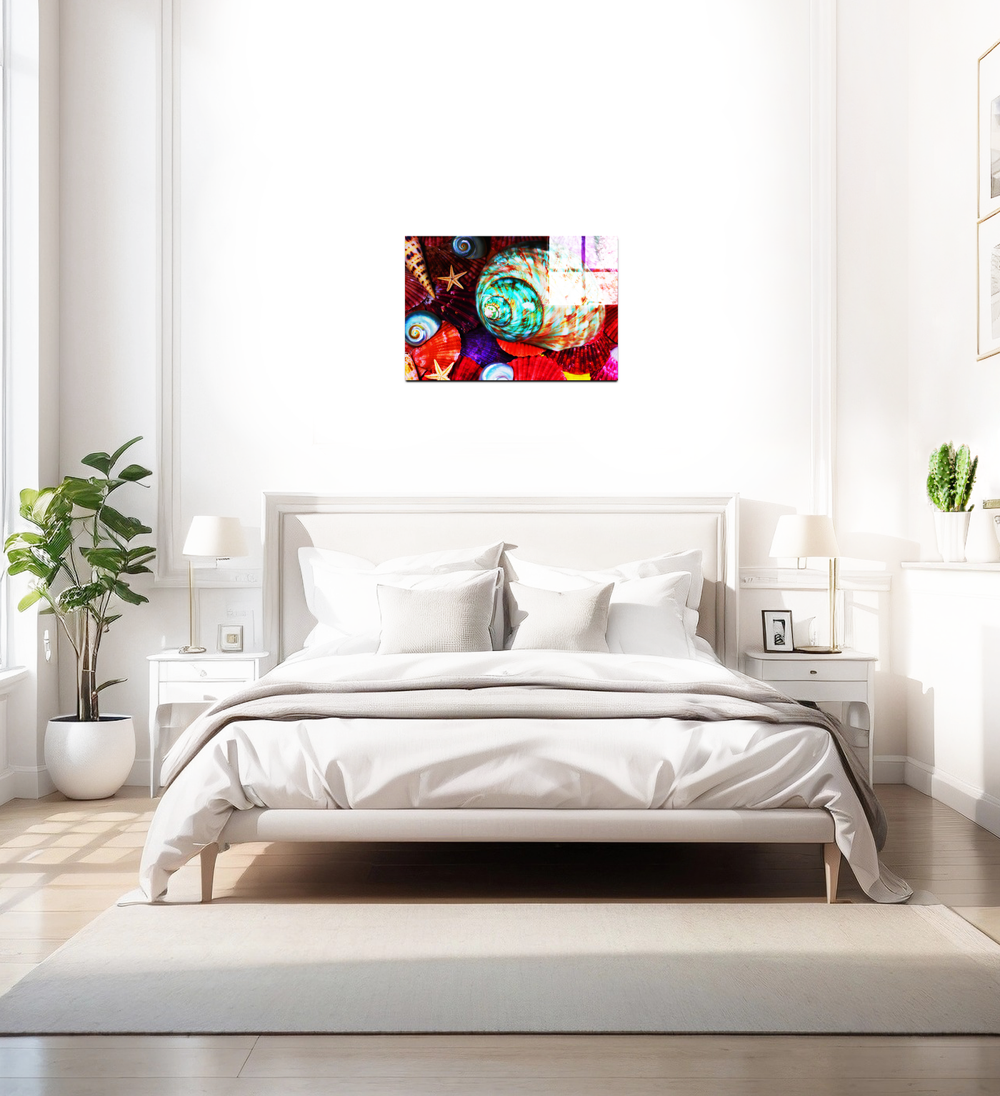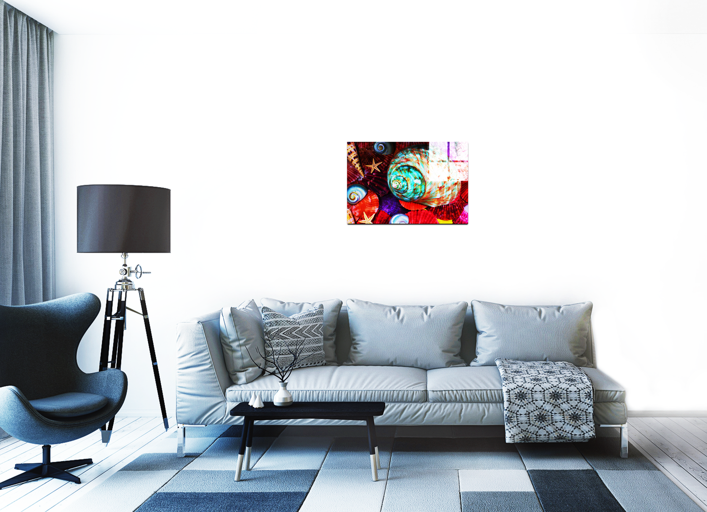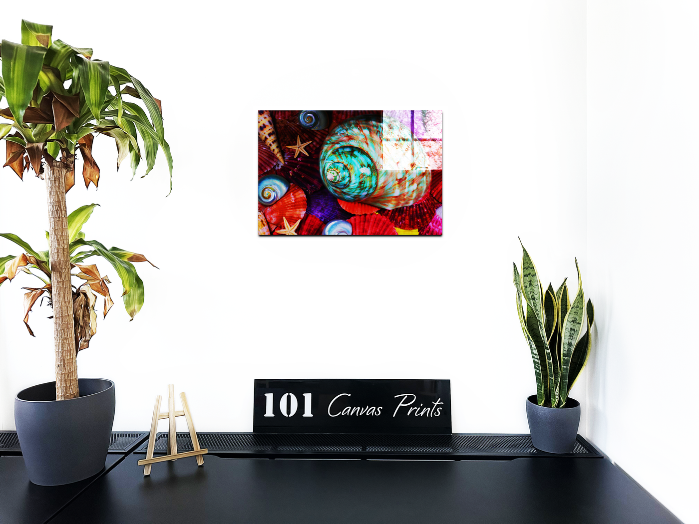 A vivid masterpiece of colour, this image features the best nature has to offer in seashells. With the magma reds and the violets of the Calico scallops, the turquoise of the Turbinidae and holography of the Nautilus shells, it really is a beach party on an Acrylic print. The vibrancy is complimented by the muted colours of the Beaded Asteroidea starfish and the Conidae shell to make this the perfect picture.