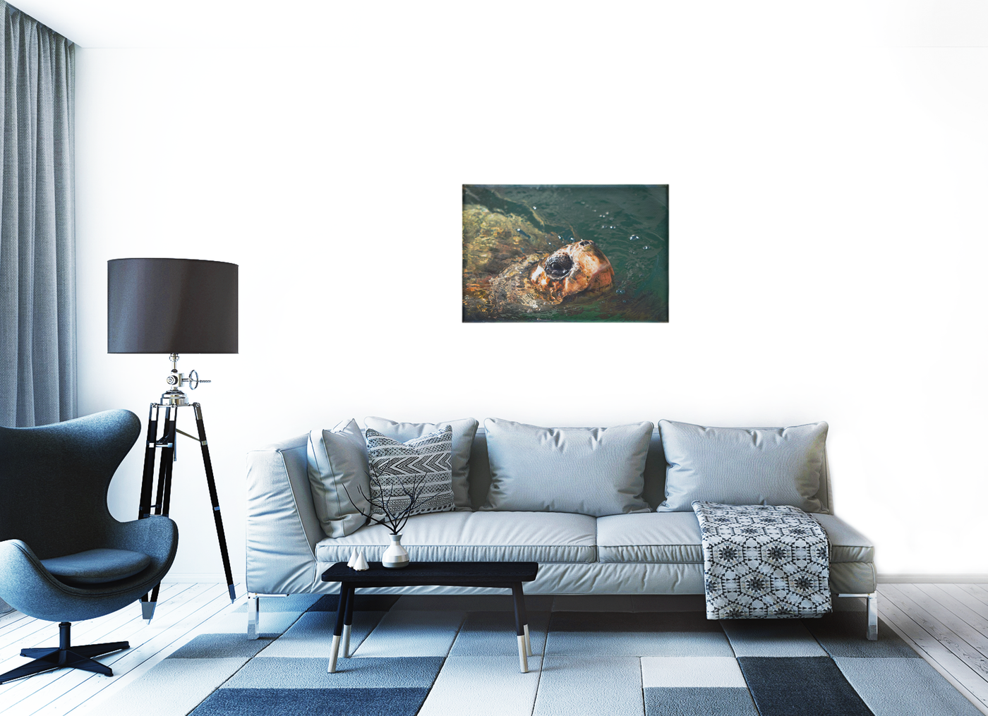 The textured surface of the Canvas print enhances the natural feel of this aquatic scene, subtly mimicking the interplay of light on water. Its matte finish softens the overall effect, creating a serene atmosphere that invites contemplation. This piece would be a perfect addition to a coastal-themed room, a nature lover's study, or any space where the calming presence of marine life is desired.
