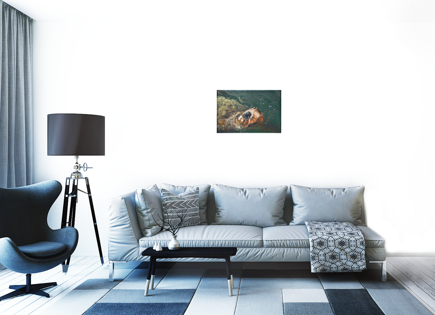 The textured surface of the Canvas print enhances the natural feel of this aquatic scene, subtly mimicking the interplay of light on water. Its matte finish softens the overall effect, creating a serene atmosphere that invites contemplation. This piece would be a perfect addition to a coastal-themed room, a nature lover's study, or any space where the calming presence of marine life is desired.