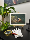 The textured surface of the Fine Art print enhances the natural feel of this aquatic scene, subtly mimicking the interplay of light on water. Its matte finish softens the overall effect, creating a serene atmosphere that invites contemplation. This piece would be a perfect addition to a coastal-themed room, a nature lover's study, or any space where the calming presence of marine life is desired.