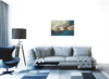 This captivating Canvas print freezes a fleeting moment as a sea turtle breaks the water's surface. The composition is masterfully framed, focusing on the turtle's head and part of its shell, with its eye as the central point of interest. Ripples of water create a natural frame around the subject, drawing the viewer's attention to the ancient mariner.