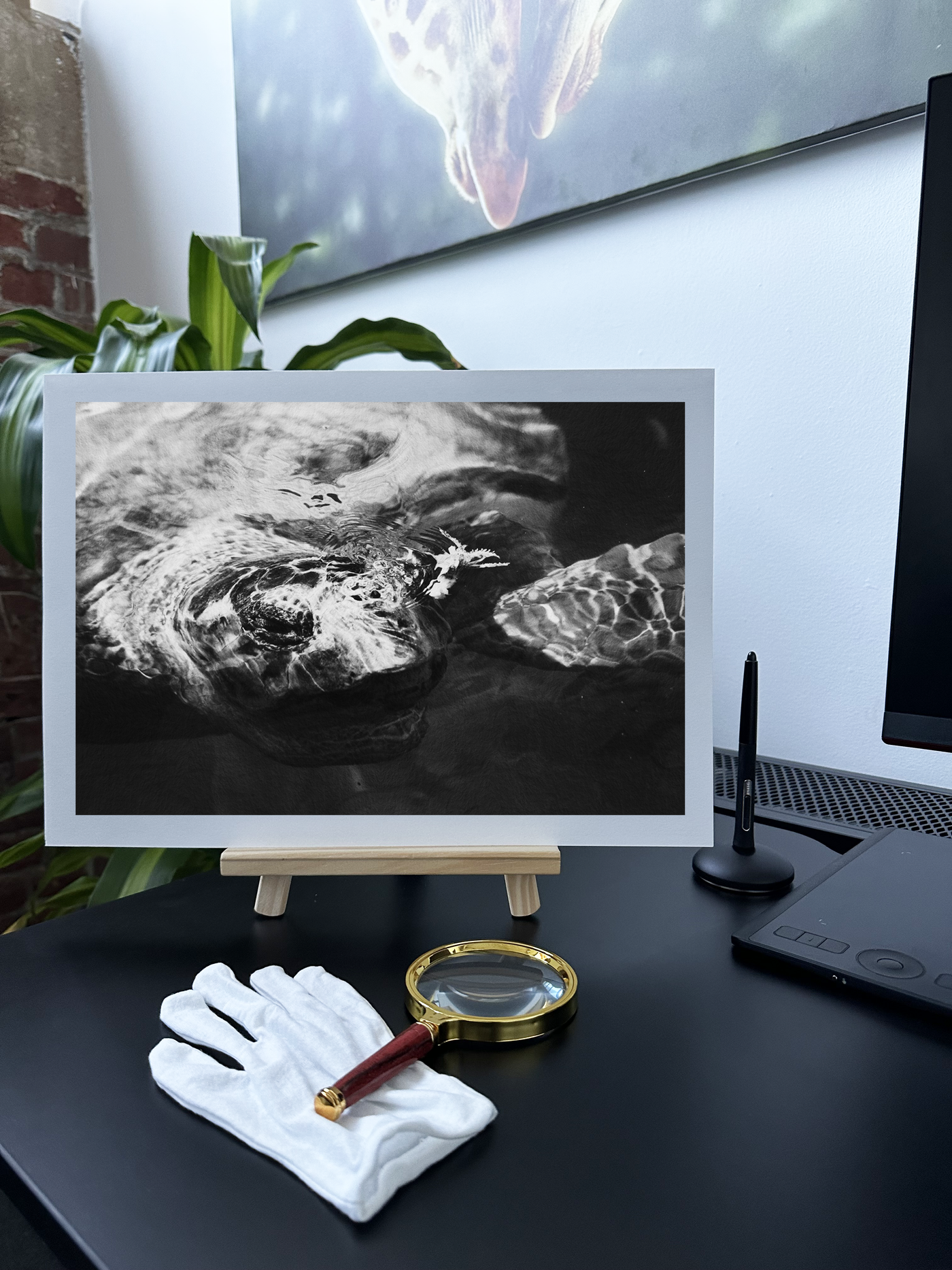 Our carefully handmade monochrome fine art prints are produced on Hahnemühle 308 matte cotton rag paper using Epson archival inks for exceptional detail and color accuracy. Each print features clean, precise edges and a textured surface that brings depth and richness to your chosen artwork, creating a gallery-worthy presentation.