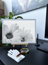 This striking Monochrome Fine Art print showcases the radiant beauty of black & white daisies in exquisite detail. The close-up composition captures two blooms, their vibrant petals stretching across the frame against a soft, muted background. The photographer's skill is evident in the perfect balance of sharp detail and gentle softness, creating a visually captivating piece.
