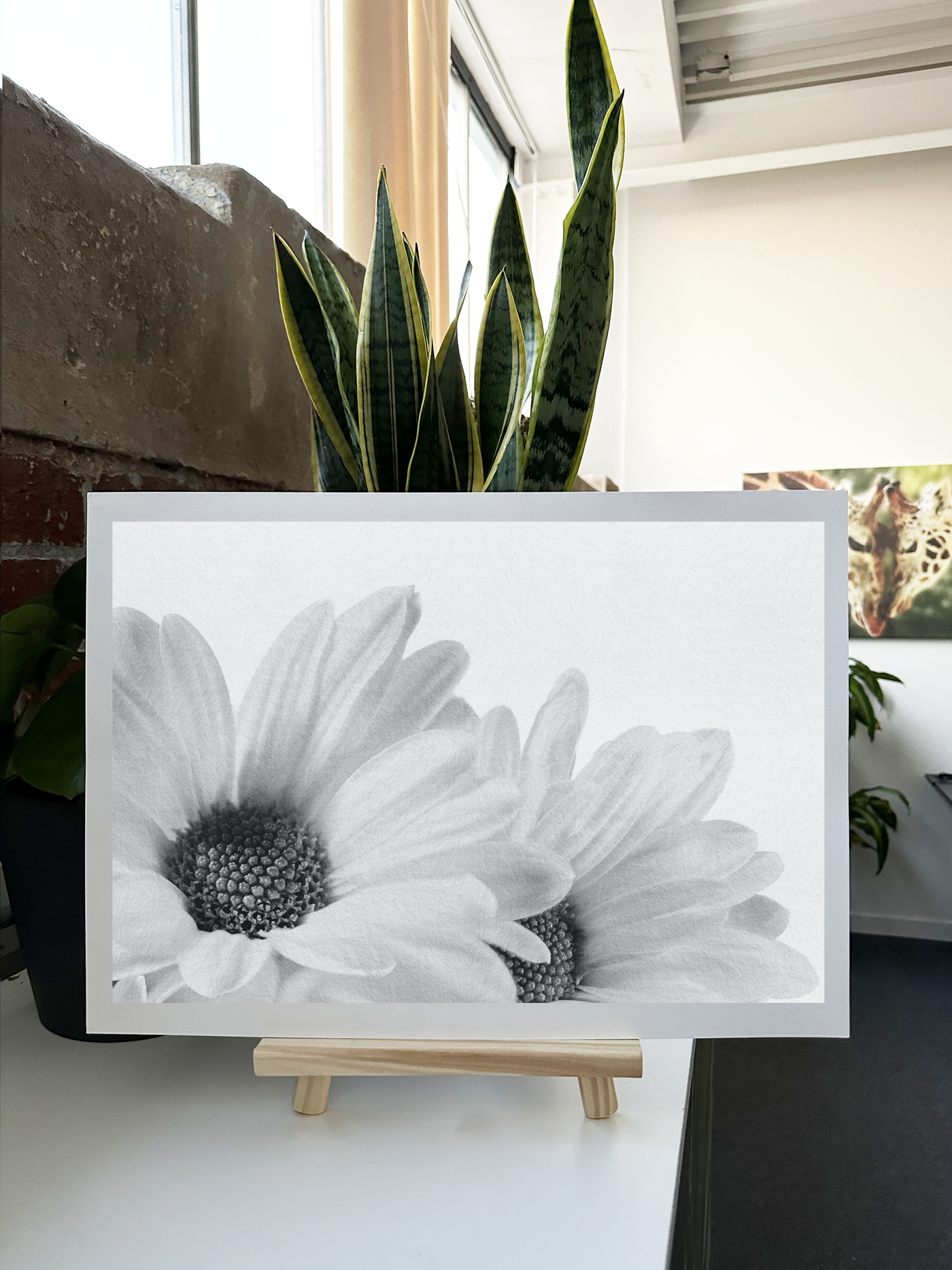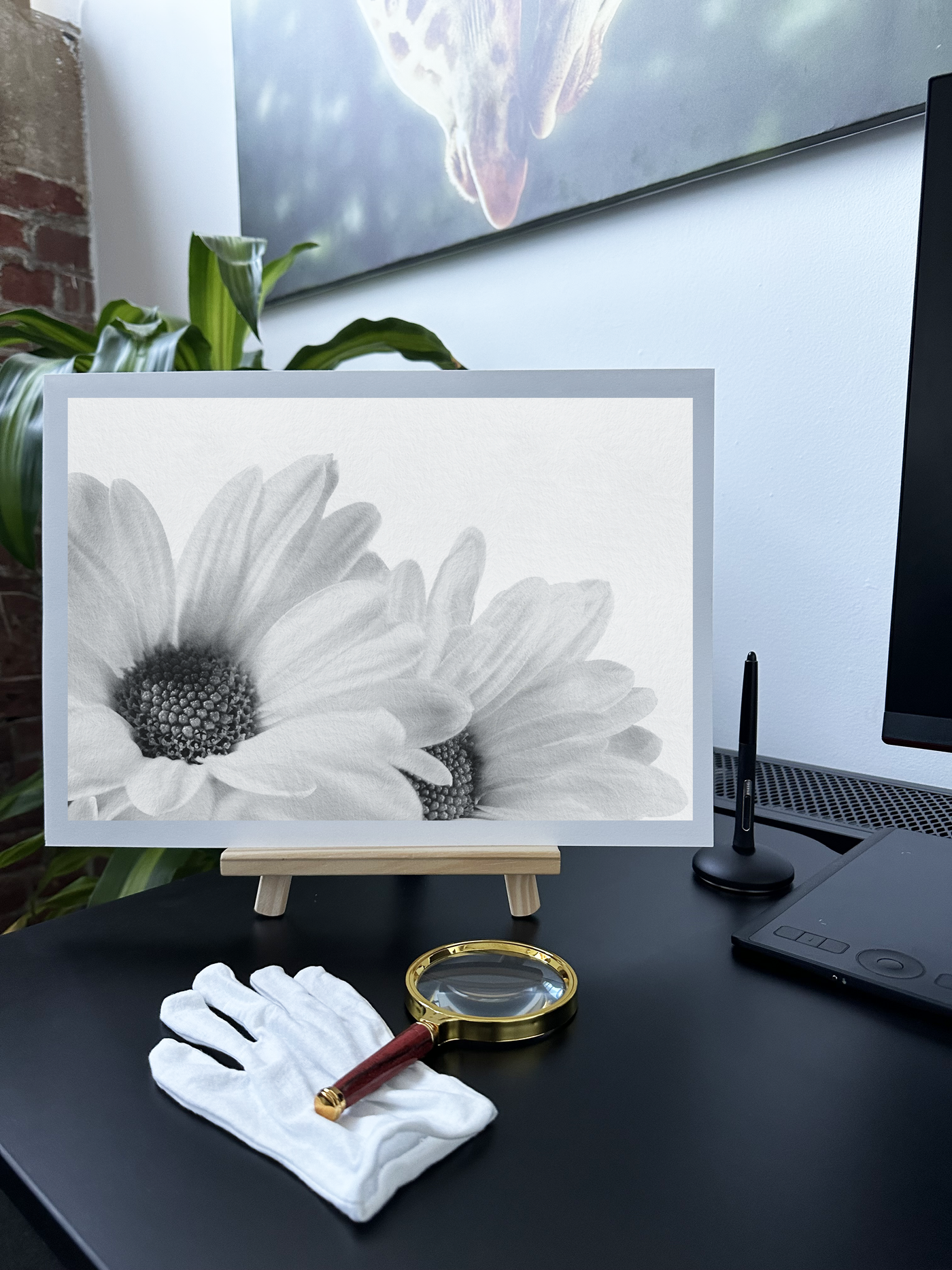 Our carefully handmade monochrome fine art prints are produced on Hahnemühle 308 matte cotton rag paper using Epson archival inks for exceptional detail and color accuracy. Each print features clean, precise edges and a textured surface that brings depth and richness to your chosen artwork, creating a gallery-worthy presentation.