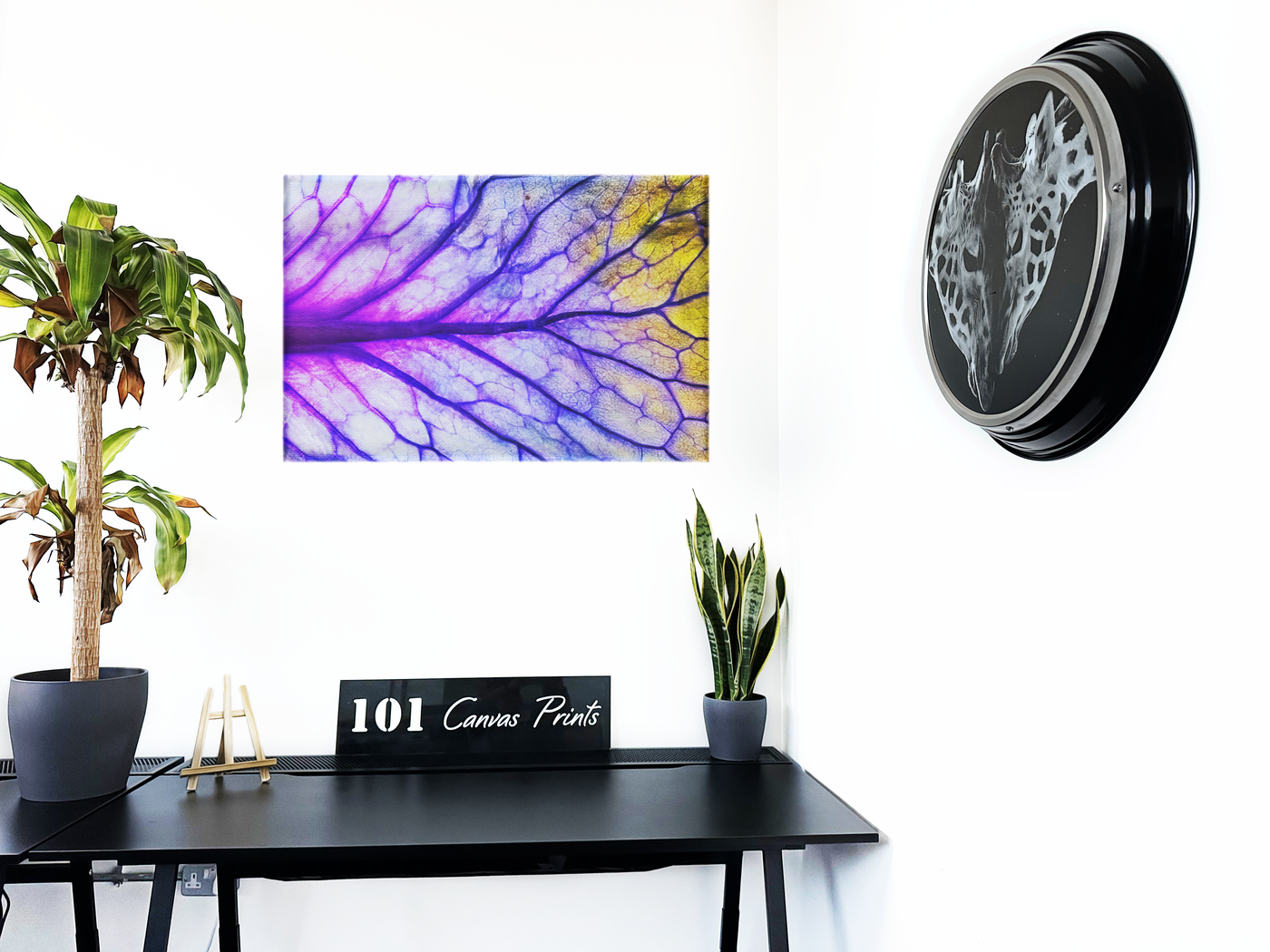 The Canvas medium perfectly complements this botanical subject, its textured surface echoing the natural fibres of the leaf. The matte finish of the Canvas softens the intense colours, creating a more organic feel that stays true to the subject's natural origins. Our dedicated team at 101 Canvas Prints have worked closely with the photographer to ensure every nuance of this stunning image is faithfully reproduced. This piece would make a striking addition to a modern living room, a creative workspace, or any area where its vibrant energy and natural artistry can be fully appreciated.