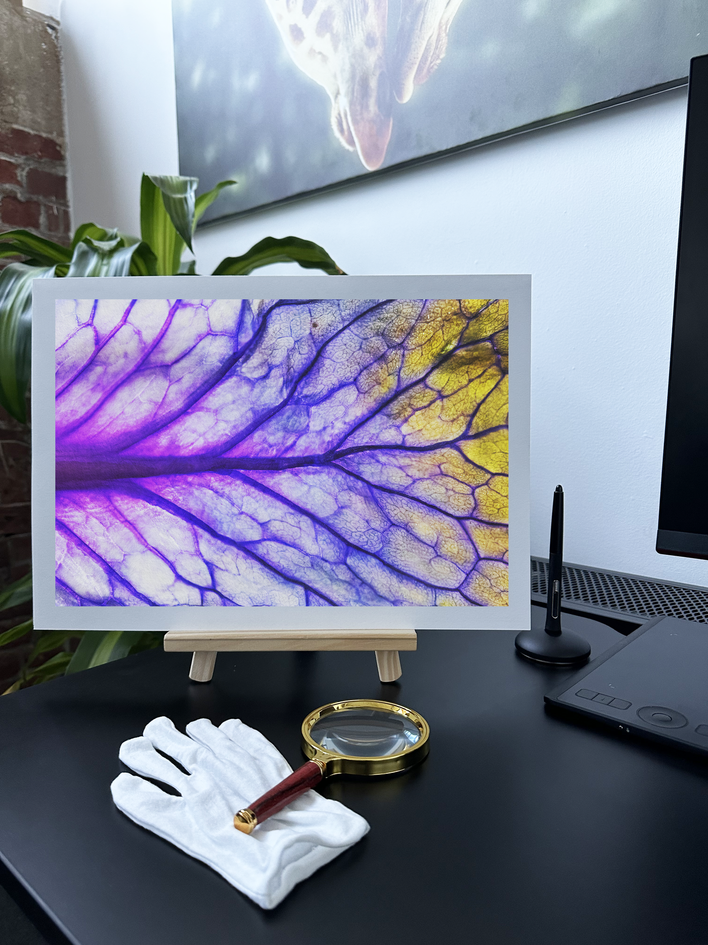 The Fine Art print medium perfectly complements this botanical subject, its textured surface echoing the natural fibres of the leaf. The matte finish of the Fine Art paper softens the intense colours, creating a more organic feel that stays true to the subject's natural origins. Our dedicated team at 101 Canvas Prints have worked closely with the photographer to ensure every nuance of this stunning image is faithfully reproduced. This piece would make a striking addition to a modern living room, a creative workspace, or any area where its vibrant energy and natural artistry can be fully appreciated.