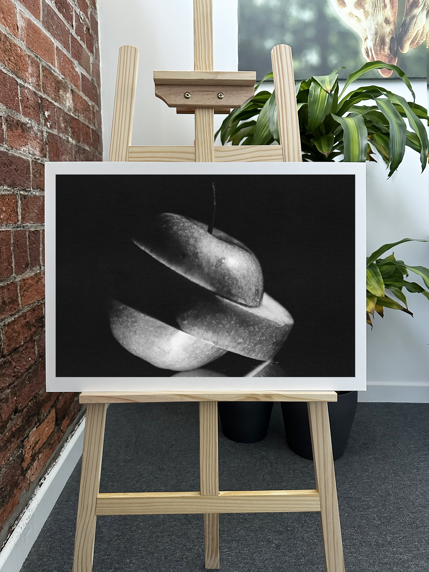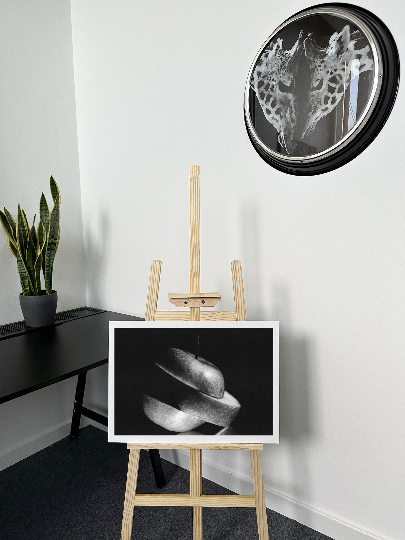 Printed on high-quality Fine Art paper, this piece will add a touch of modern sophistication to any space. Its clean lines and vivid Monochrome hues make it an ideal accent for contemporary kitchens, dining areas, or any room where you want to introduce a pop of natural vibrancy against a sleek, dark backdrop.