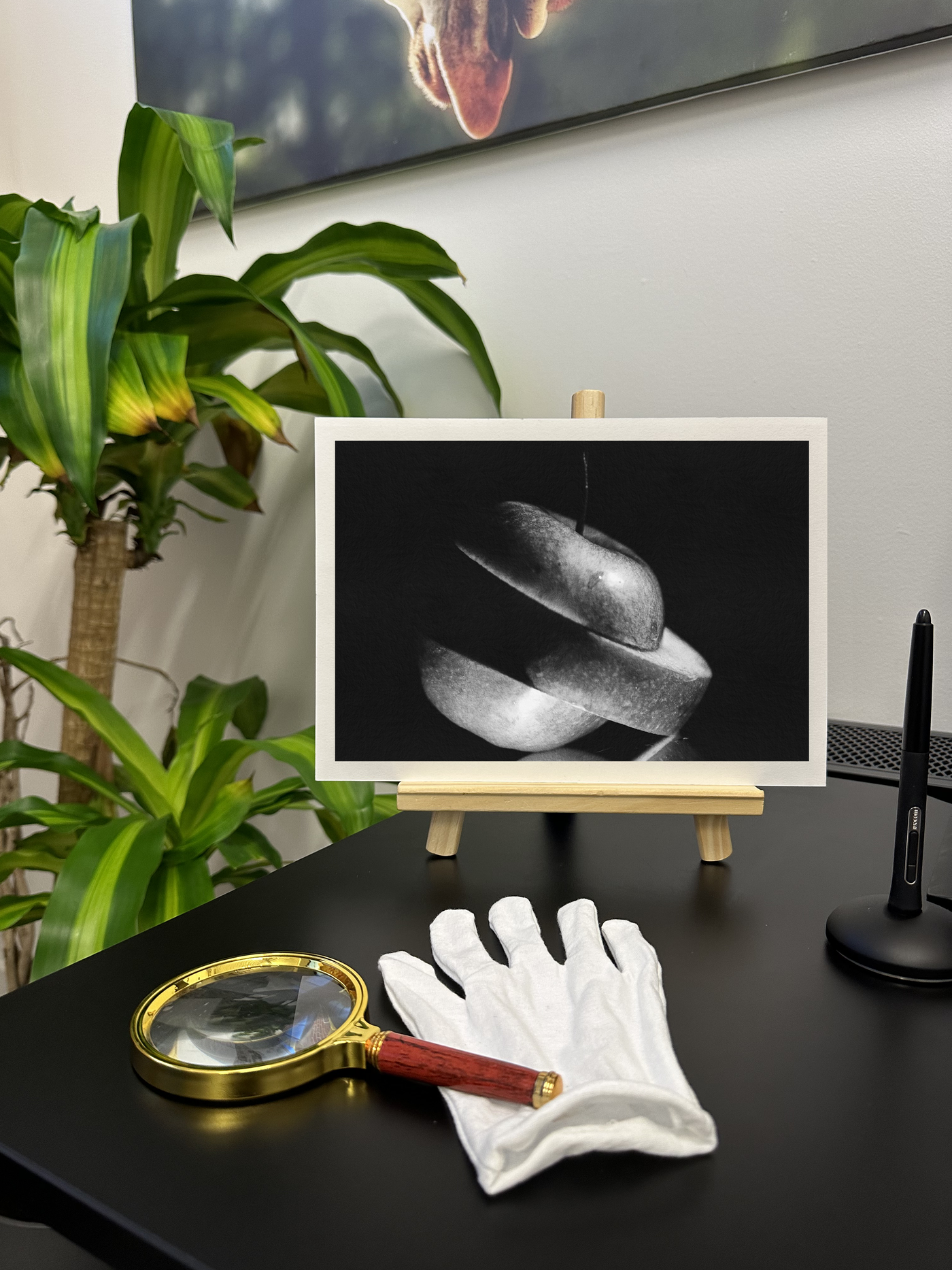 Our carefully handmade monochrome fine art prints are produced on Hahnemühle 308 matte cotton rag paper using Epson archival inks for exceptional detail and color accuracy. Each print features clean, precise edges and a textured surface that brings depth and richness to your chosen artwork, creating a gallery-worthy presentation.