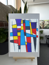 Masterfully captured by the 101 Canvas Prints photography team, this geometric composition evokes the vibrant atmosphere of a Filipino Easter celebration. Inspired by the artist's teenage memories of decorating village streets for Visperas, the painting's criss-crossing lines and blocks of colour mirror the banderitas (buntings) that would create festive canopies overhead. The strong vertical elements suggest the lamp posts and trees that once held these colourful decorations, while the intersecting patterns capture the communal spirit of the Barrio Fiesta.