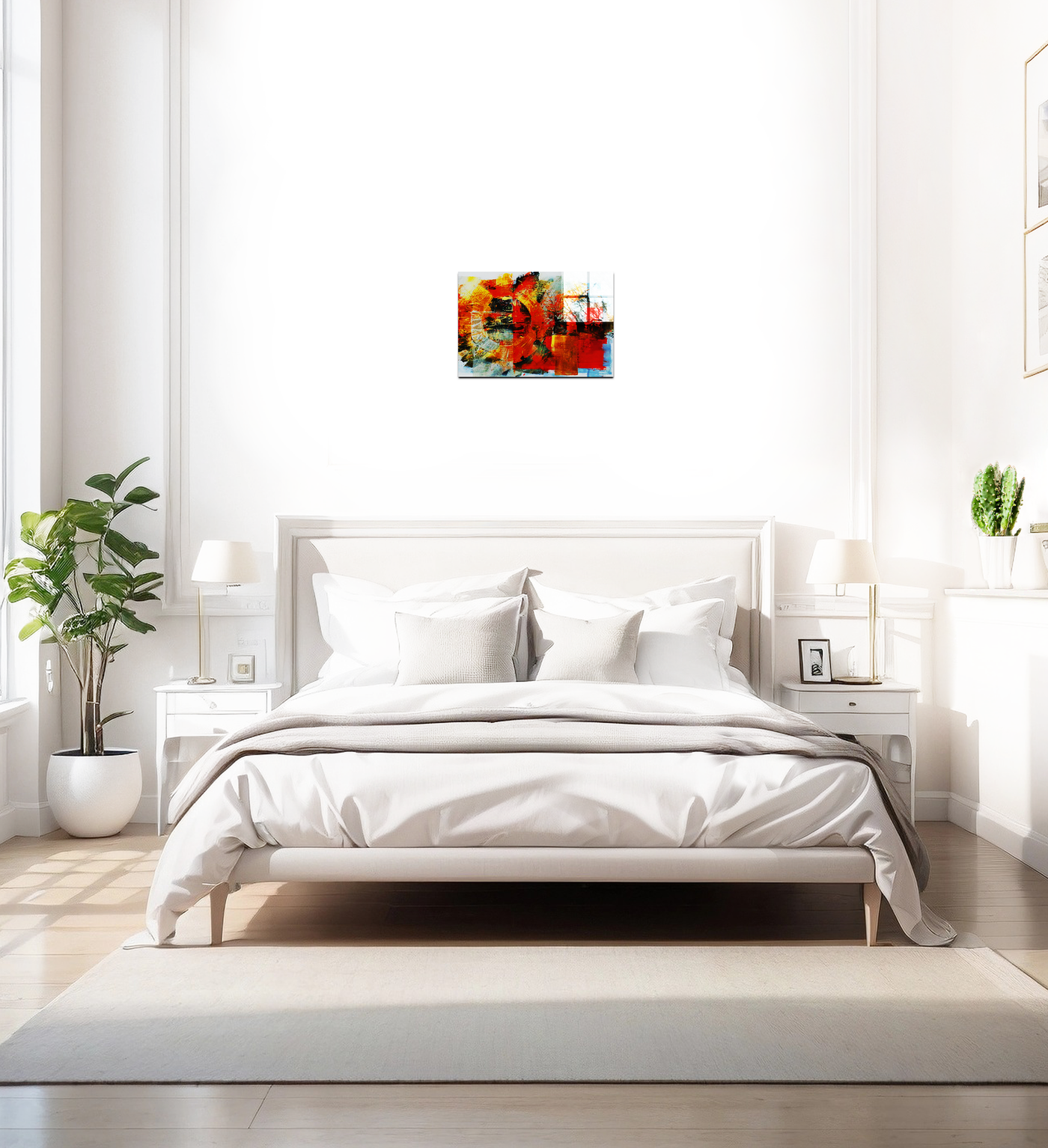 The artist's mastery of colour brings out an extraordinary range of reds and golds that seem to burn with inner light, suggesting both earthly passion and divine presence. Through our precise photography and print enhancement process, we've maintained every nuance of the original artwork's emotional intensity, from the bold gestural movements to the subtle spiritual undertones that emerge from the composition's depths. The result is an image that serves both as a celebration of faith and a powerful piece of contemporary art.