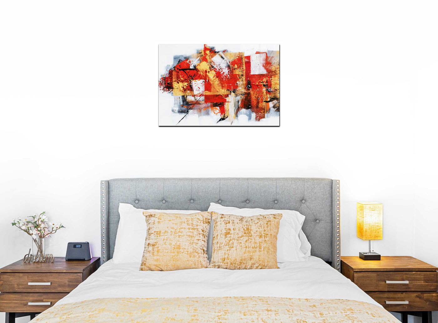 The artist's mastery of colour brings out an extraordinary range of reds and golds that seem to burn with inner light, suggesting both earthly passion and divine presence. Through our precise photography and print enhancement process, we've maintained every nuance of the original artwork's emotional intensity, from the bold gestural movements to the subtle spiritual undertones that emerge from the composition's depths. The result is an image that serves both as a celebration of faith and a powerful piece of contemporary art.