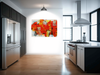 The colour palette burns with intensity, dominated by deep crimsons and blazing oranges that seem to emerge from darkness, with touches of celestial blue providing divine contrast. Our print enhancement team have carefully preserved every energetic brushstroke and textural detail that gives this piece its raw emotional power, from the dramatic sweeps of red that dominate the composition to the subtle interplay of light and shadow that suggests spiritual presence.